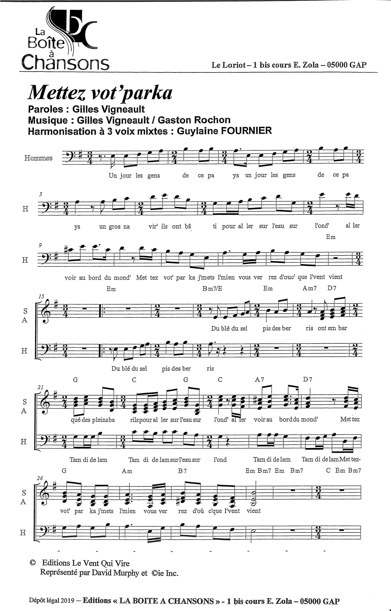 Paroles et musique : G. Vigneault / G. Rochon Harmonisation : Guylaine Fournier