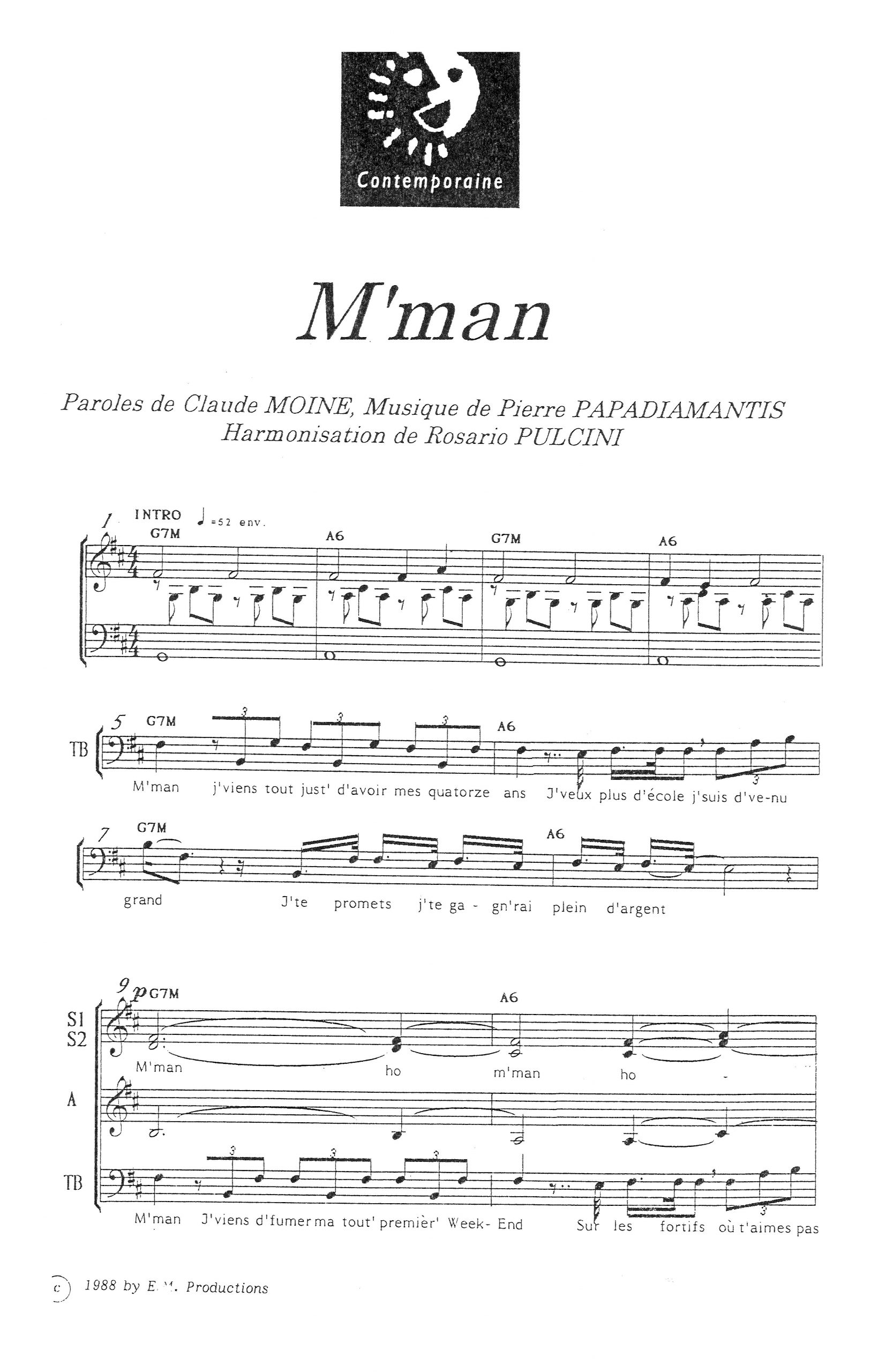 Paroles et musique de MOINE/PAPADIAMANTIS Harmonisation : Rosario PULCINI