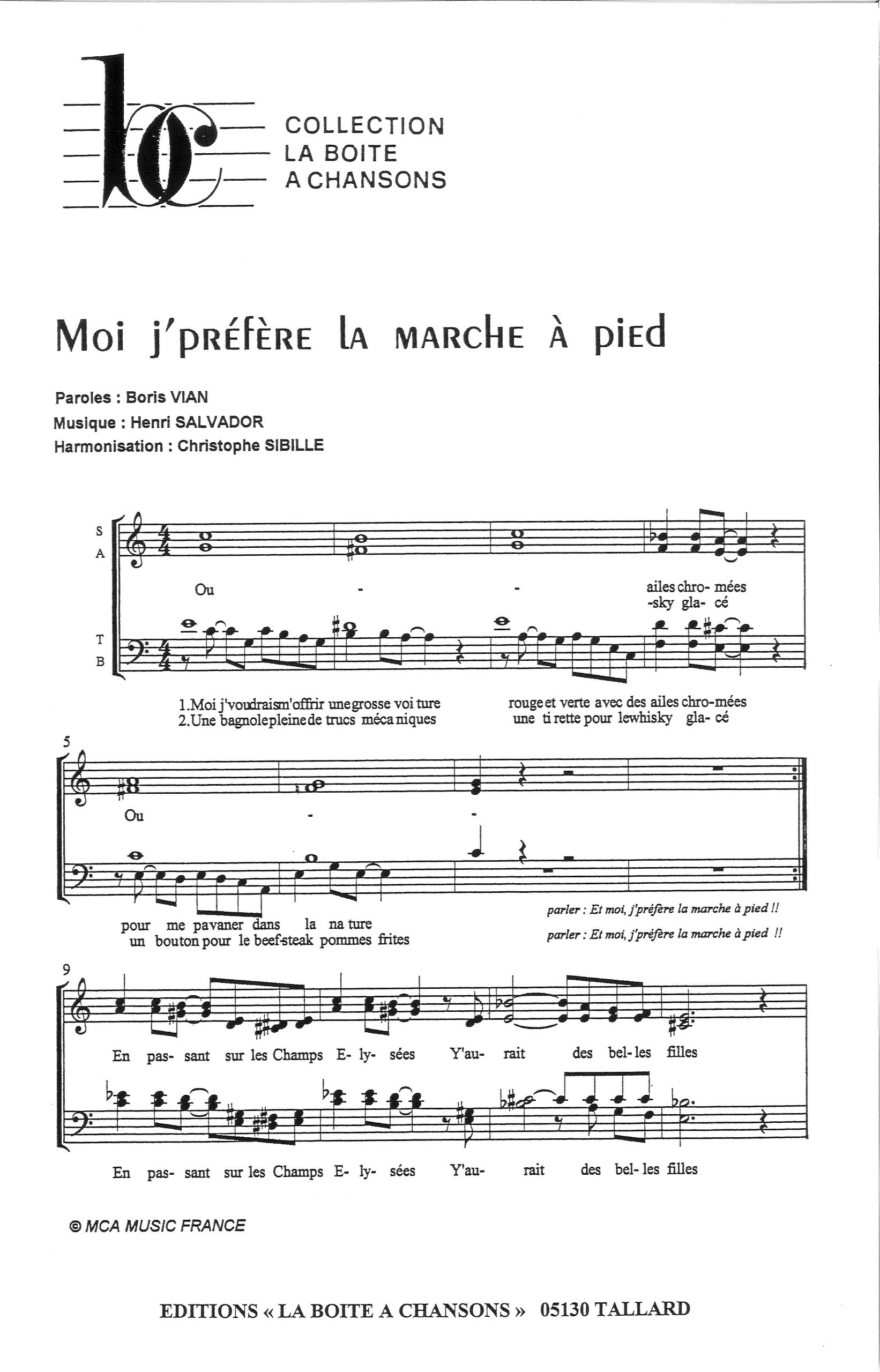 Paroles et musique de VIAN/SALVADOR Harmonisation : SIBILLE