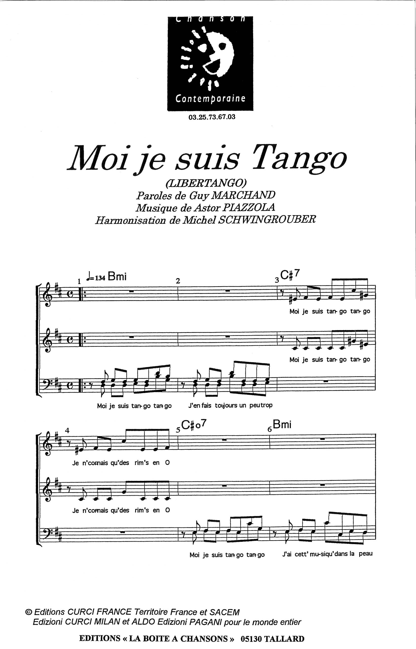 Paroles et musique de MARCHAND/PIAZZOLA Harmonisation : Michel SCHWINGROUBER