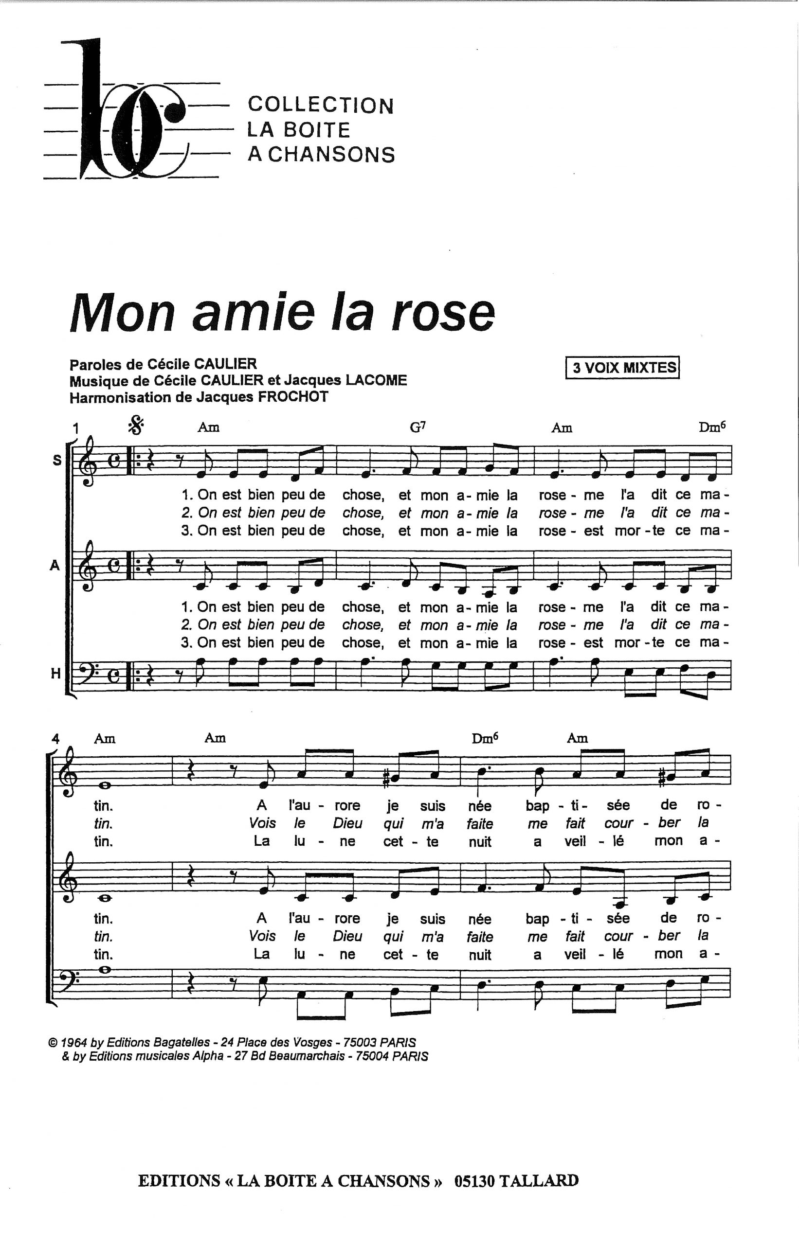 Paroles et musique de LACOME/CAULIER Harmonisation : Jacques FROCHOT