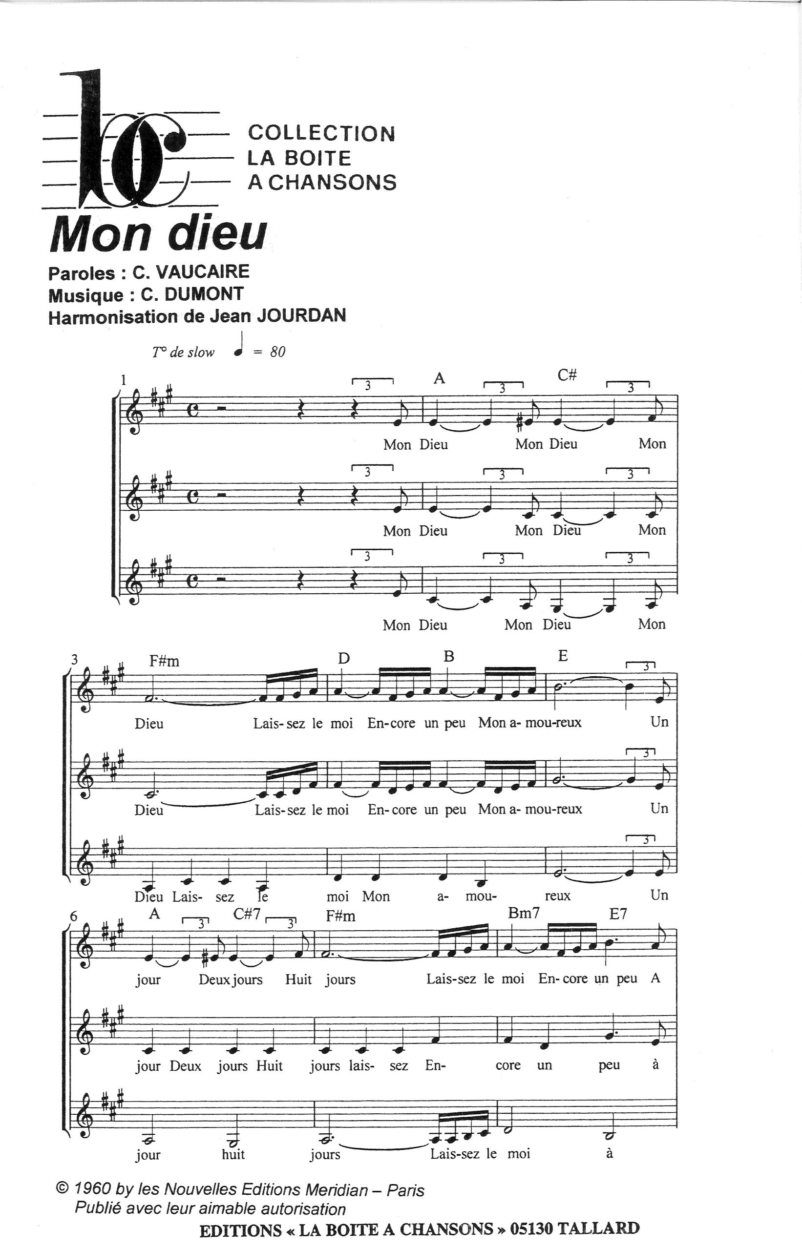 Paroles et musique de VAUCAIRE/DUMONT Harmonisation : Jean JOURDAN