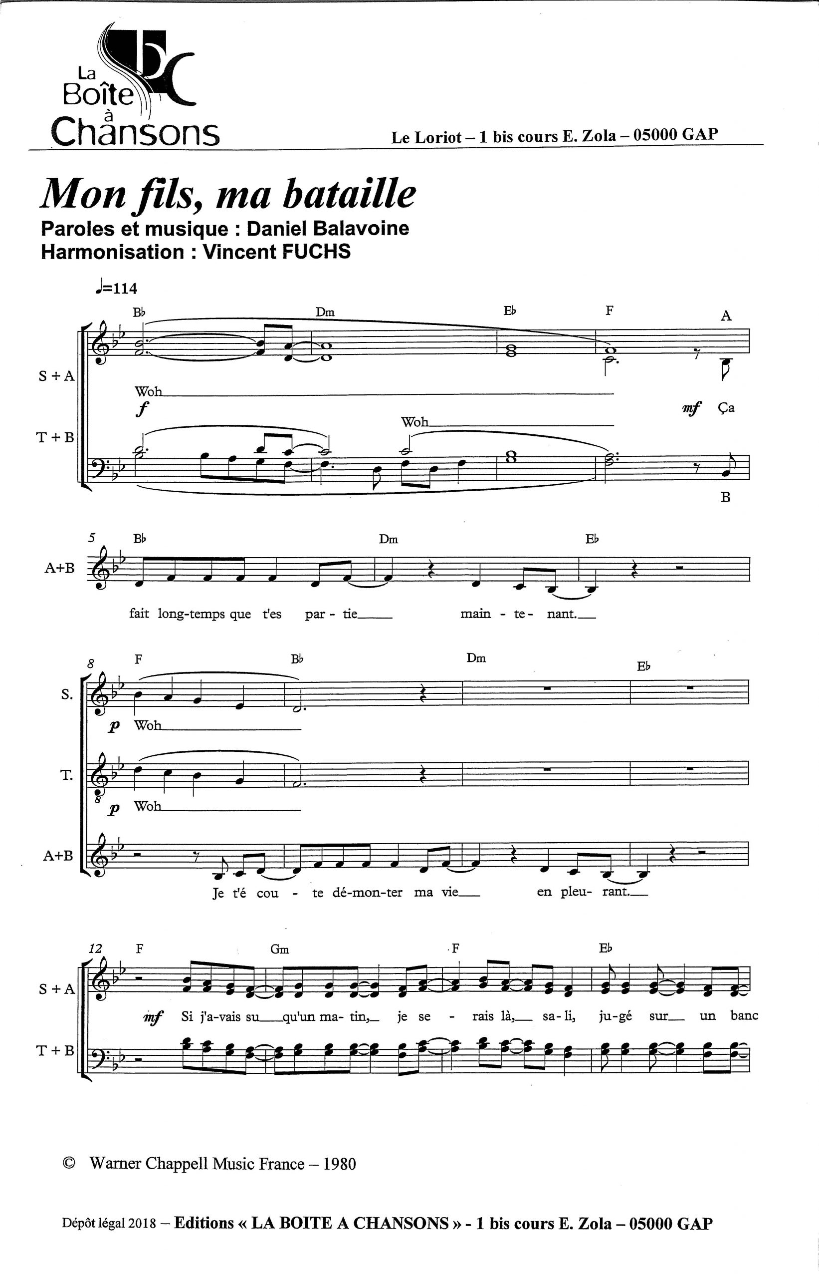 Paroles et musique : D. Balavoine Harmonisation : Vincent FUCHS