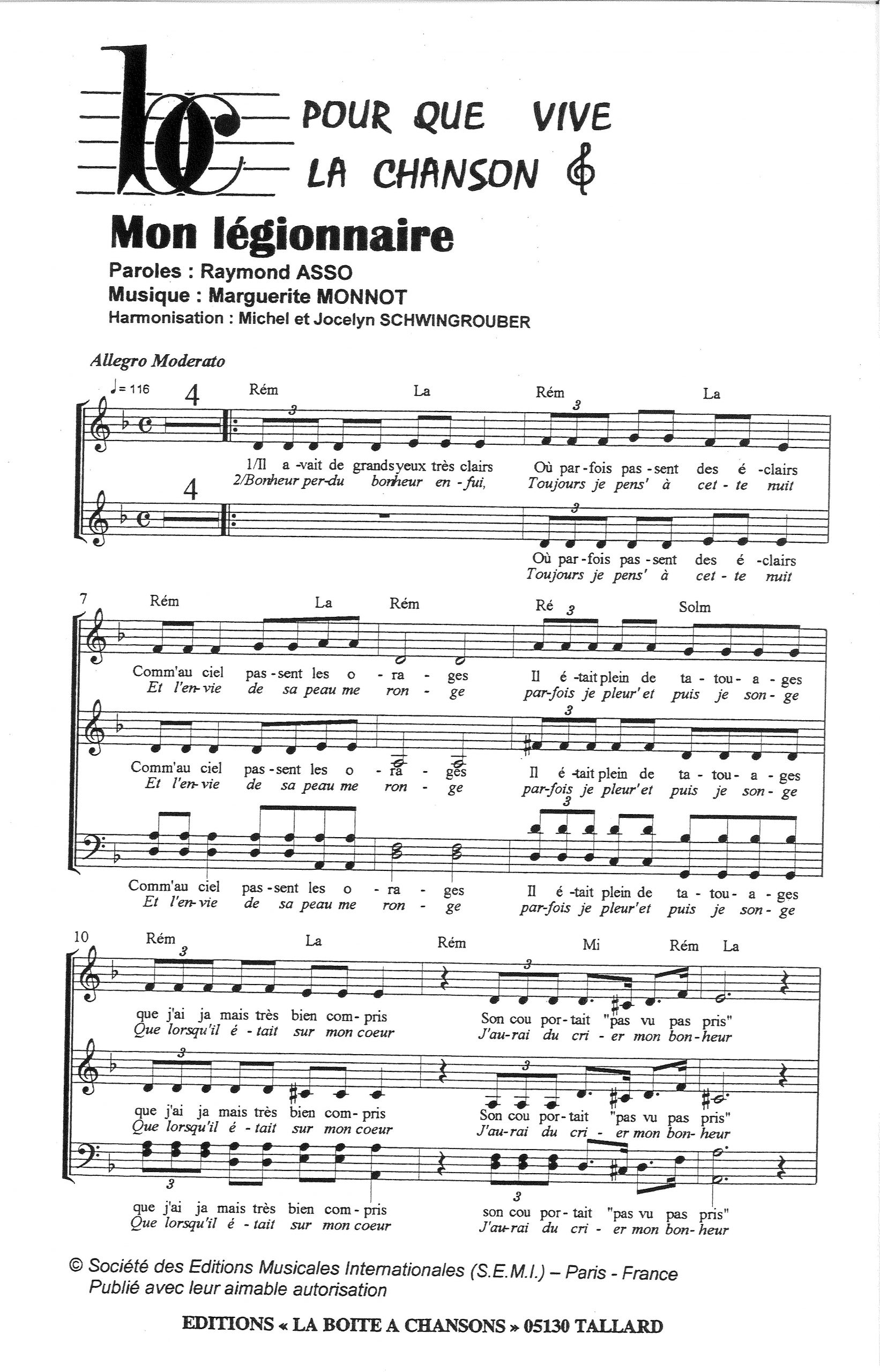 Paroles et musique de ASSO/MONNOT Harmonisation : Michel SCHWINGROUBER