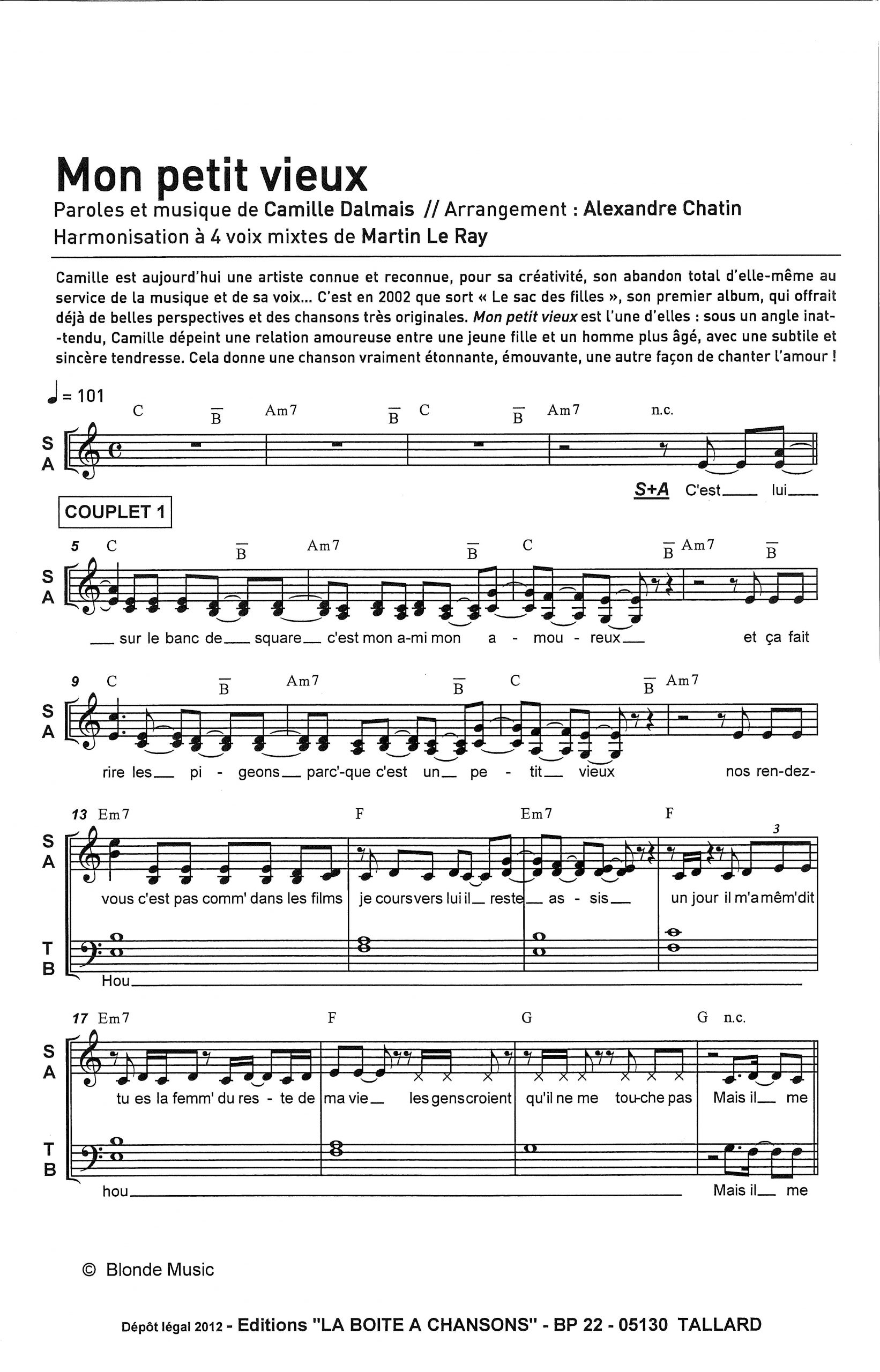 Paroles et musique de CAMILLE Harmonisation : Martin LE RAY