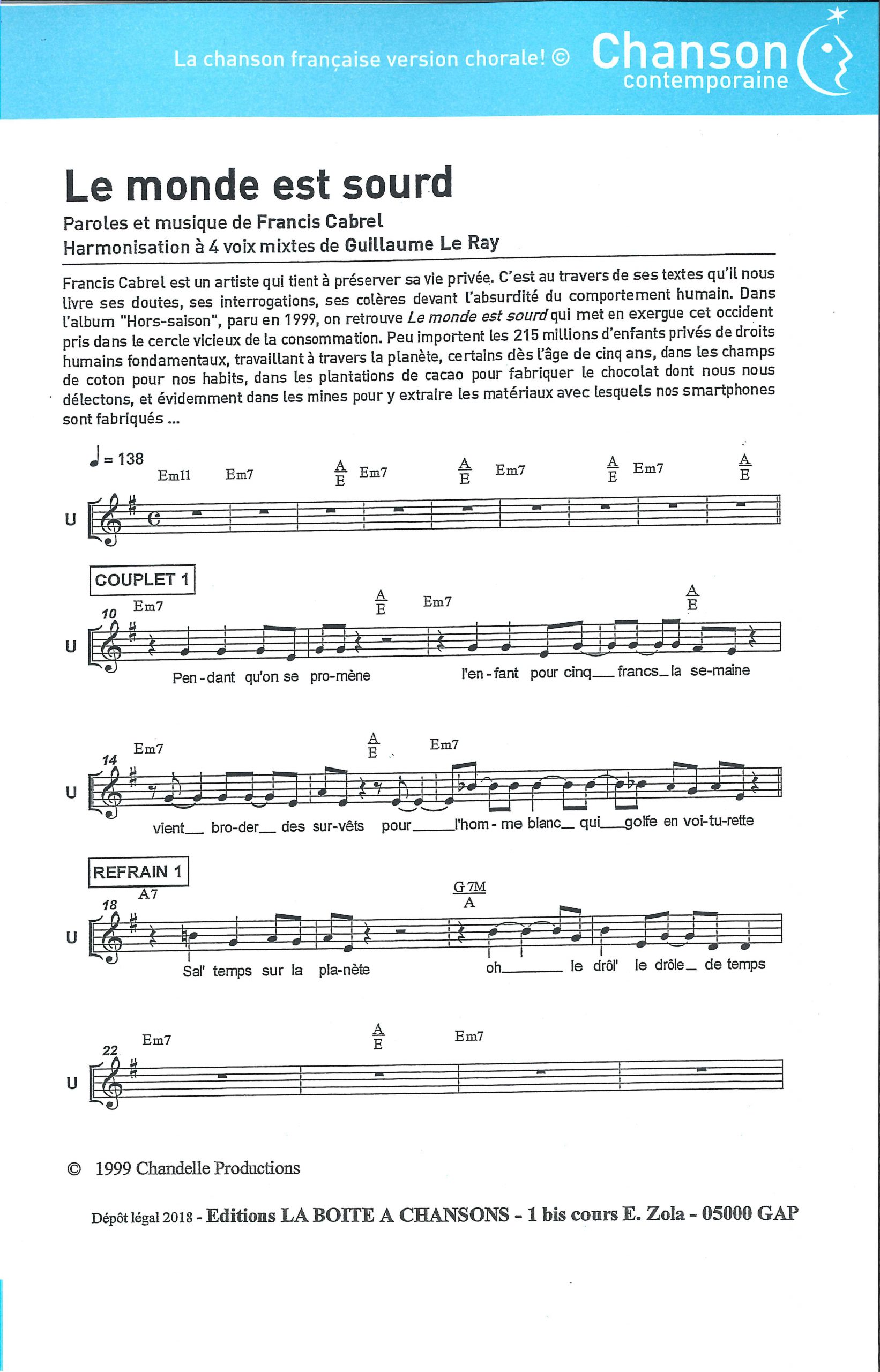 Paroles et musique : F. Cabrel Harmonisation : Guillaume Le Ray