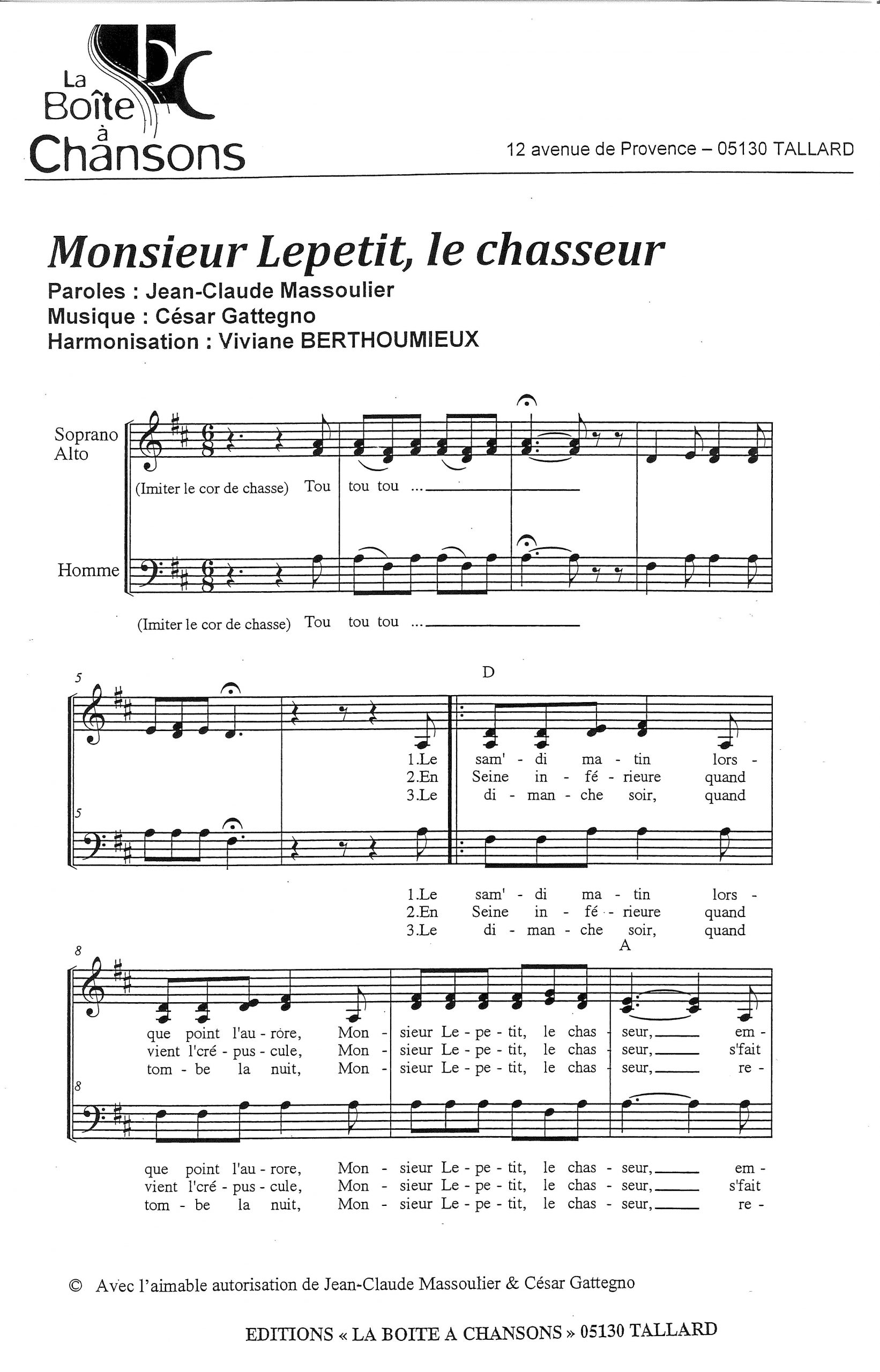 Paroles et musique de MASSOULIER/GATTEGNO Harmonisation : Viviane BERTHOUMIEUX
