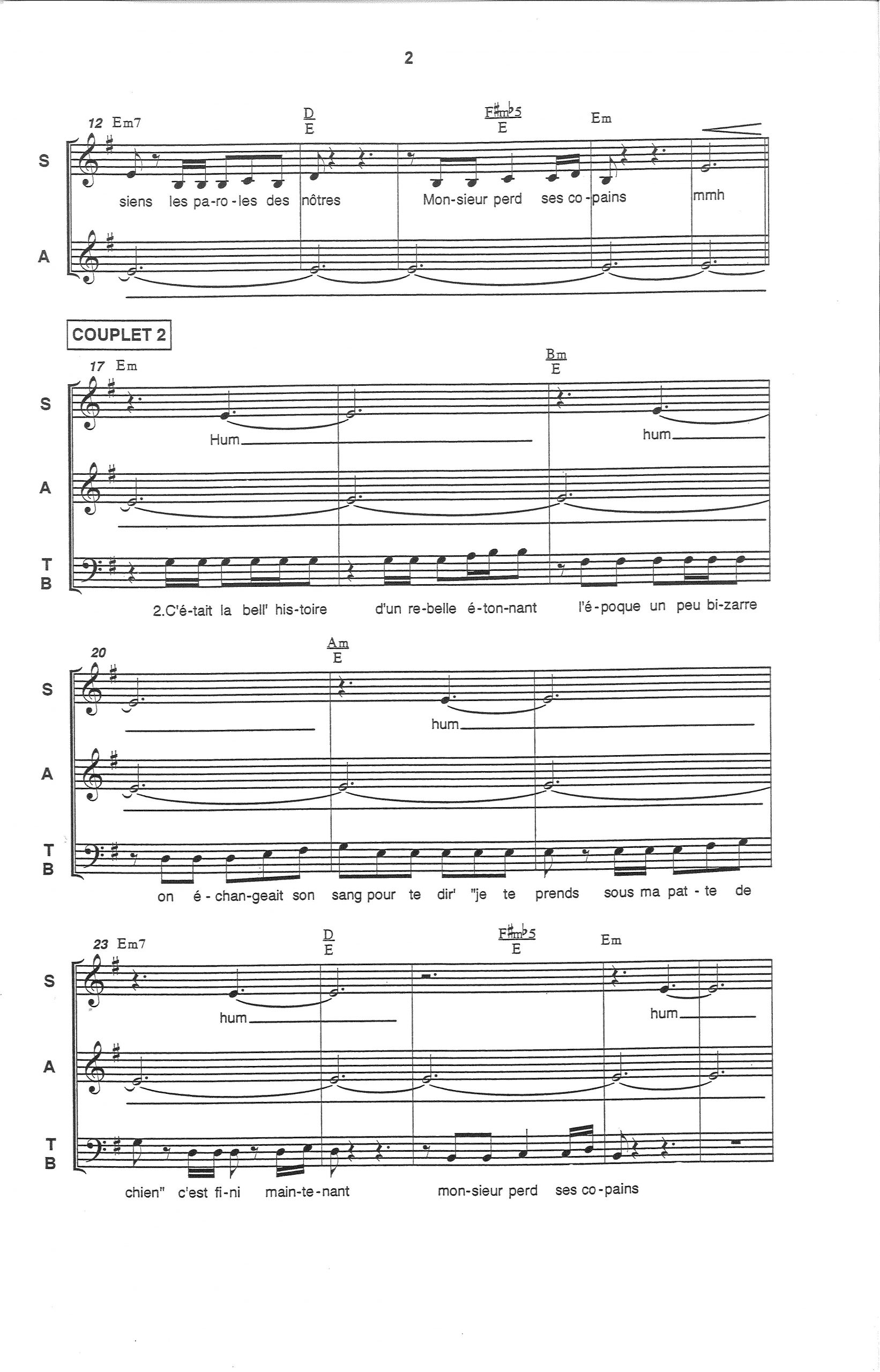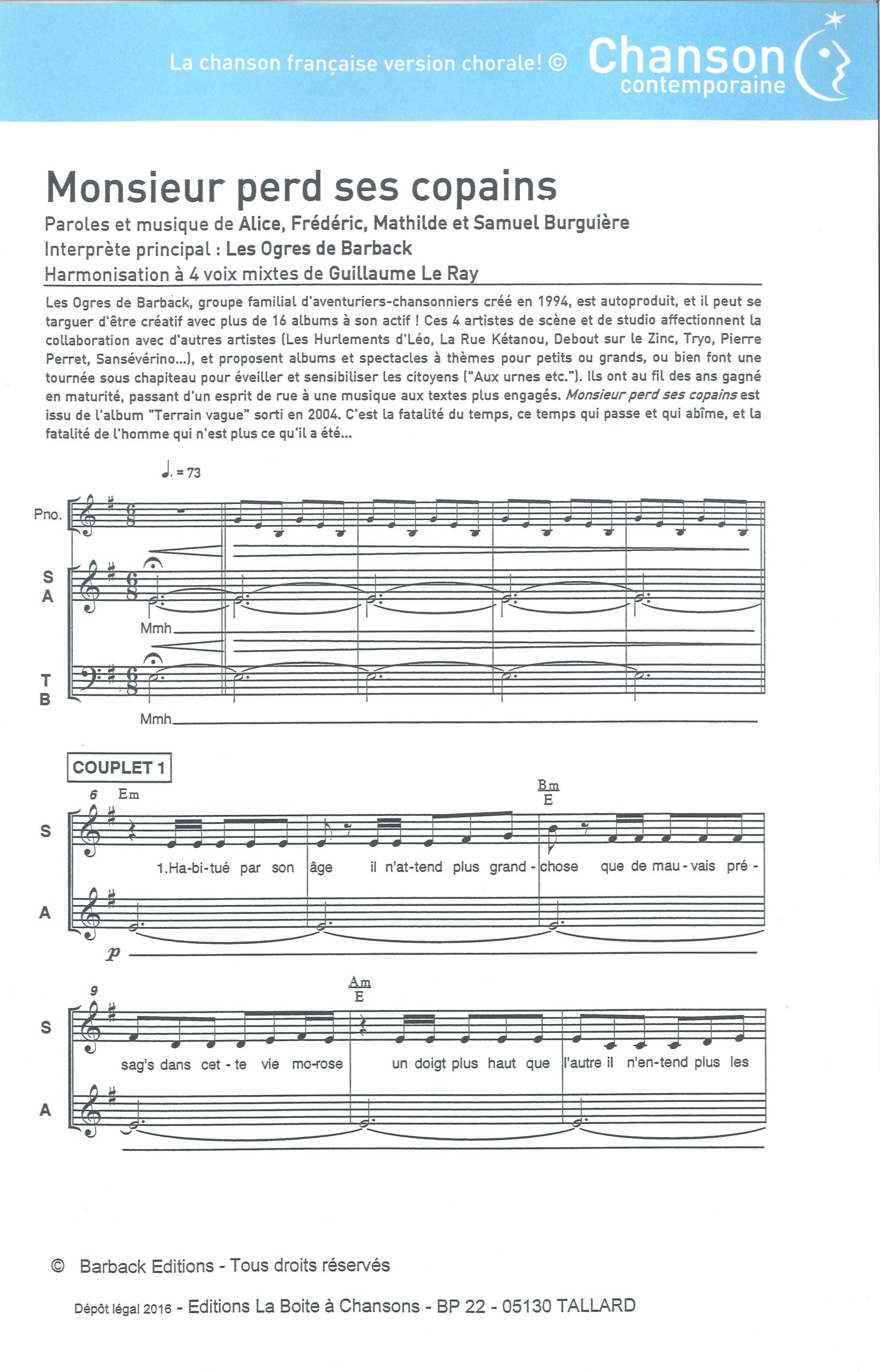 Paroles et musique : Ogres de Barback Harmonisation : Guillaume LE RAY