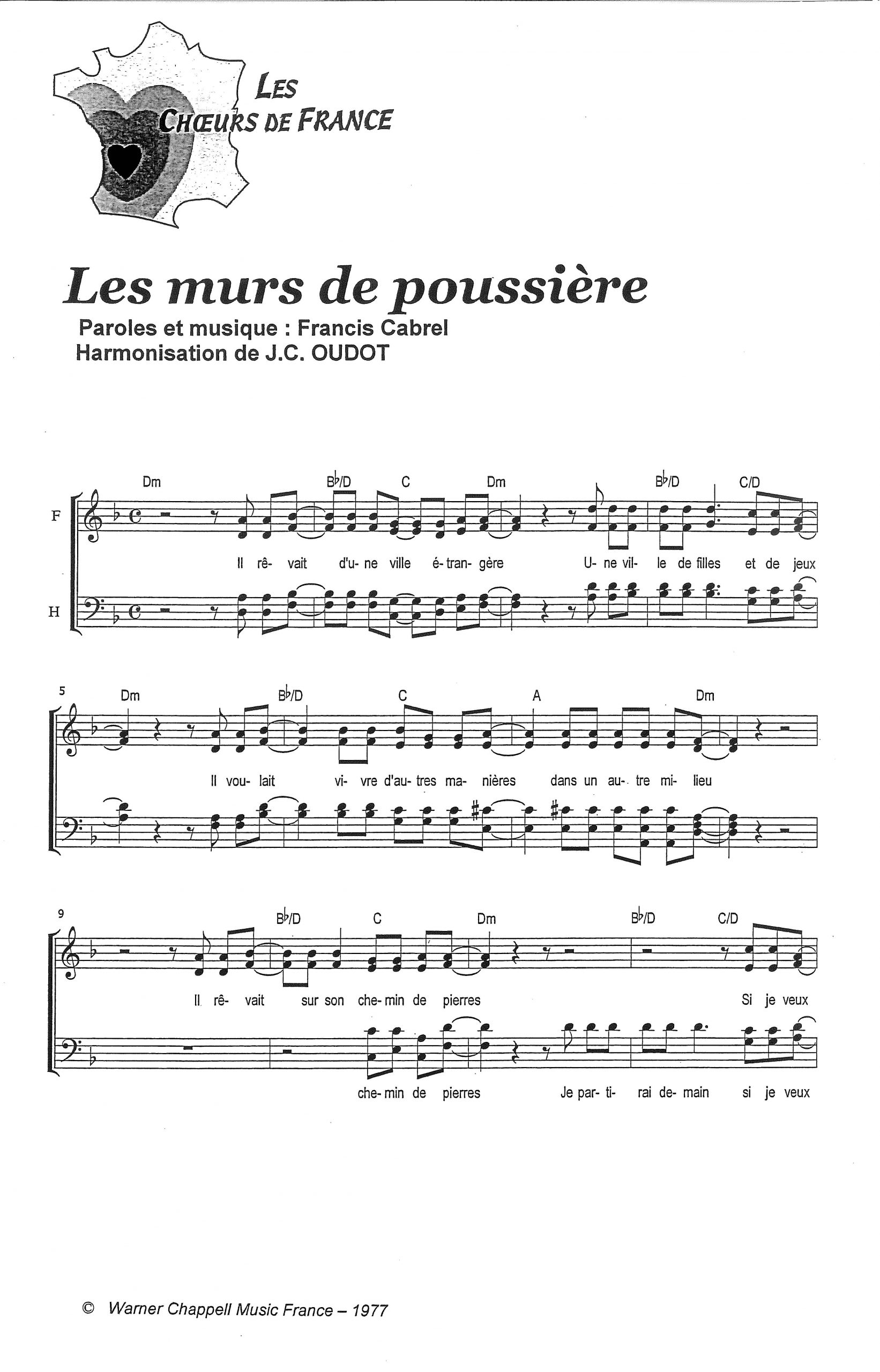 Paroles et musique : F. Cabrel Harmonisation : Jean Claude OUDOT
