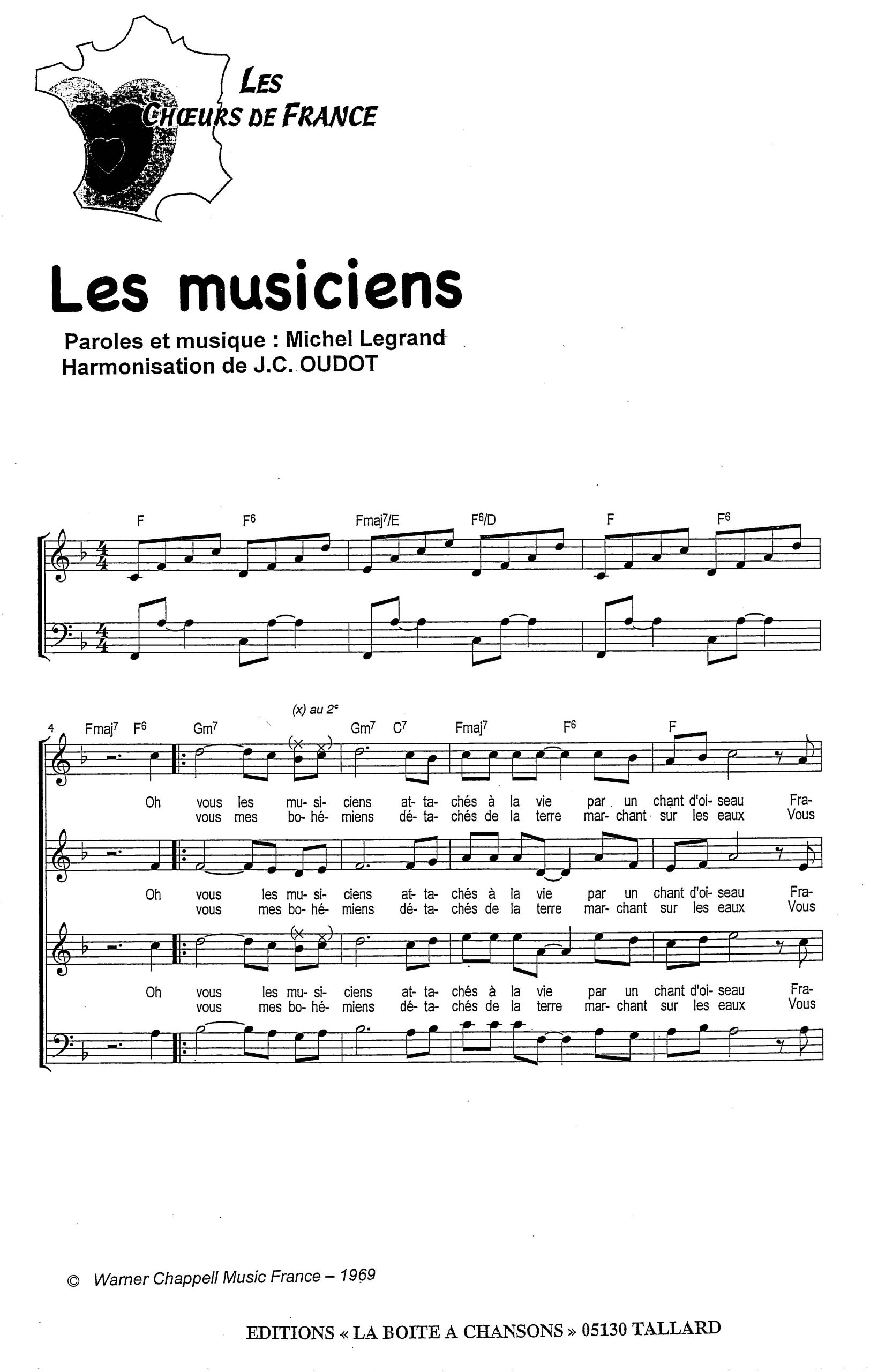 Paroles et musique de LEGRAND Harmonisation : Jean Claude OUDOT