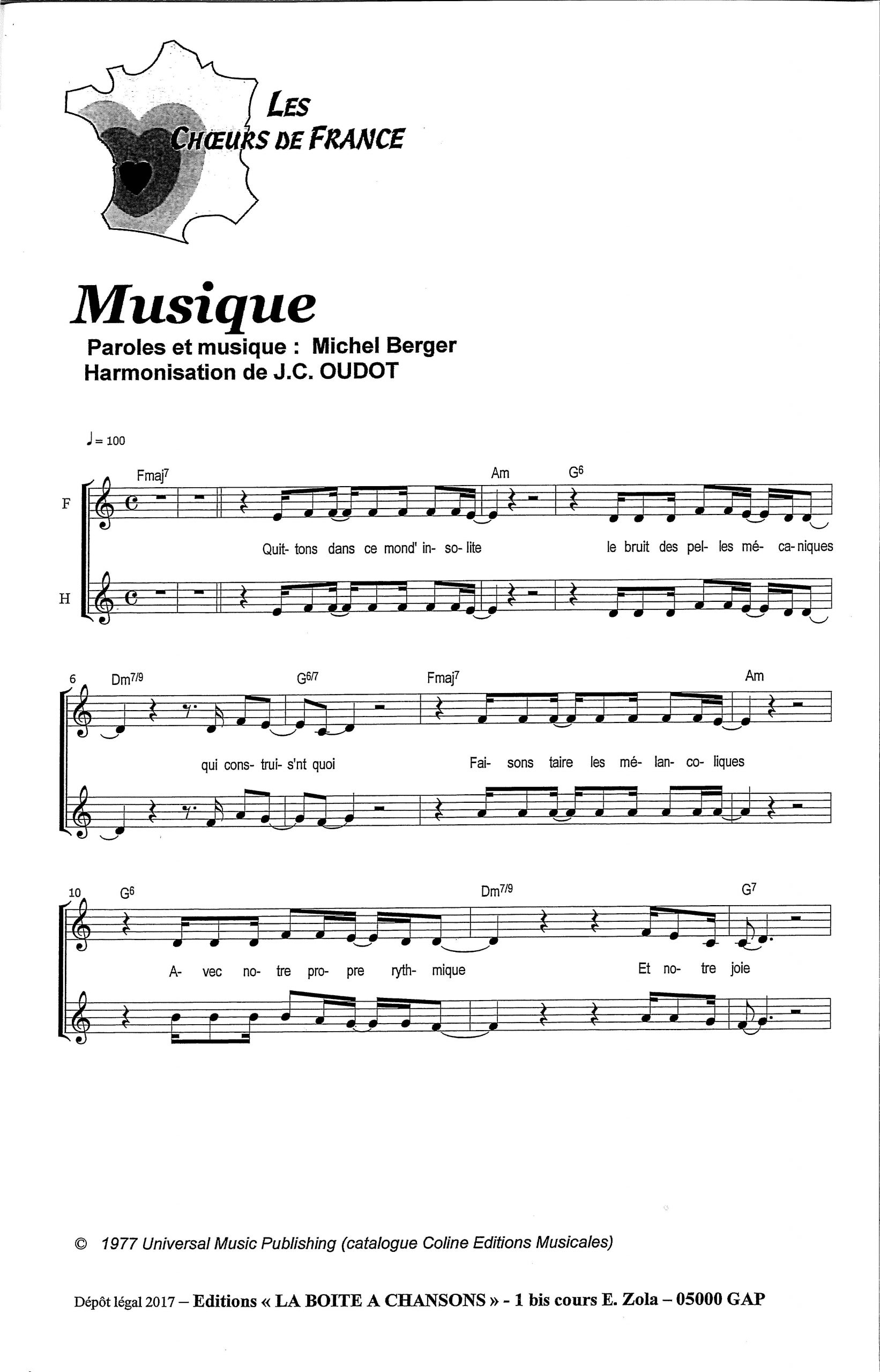 Paroles et musique : M. Berger Harmonisation : Jean Claude OUDOT