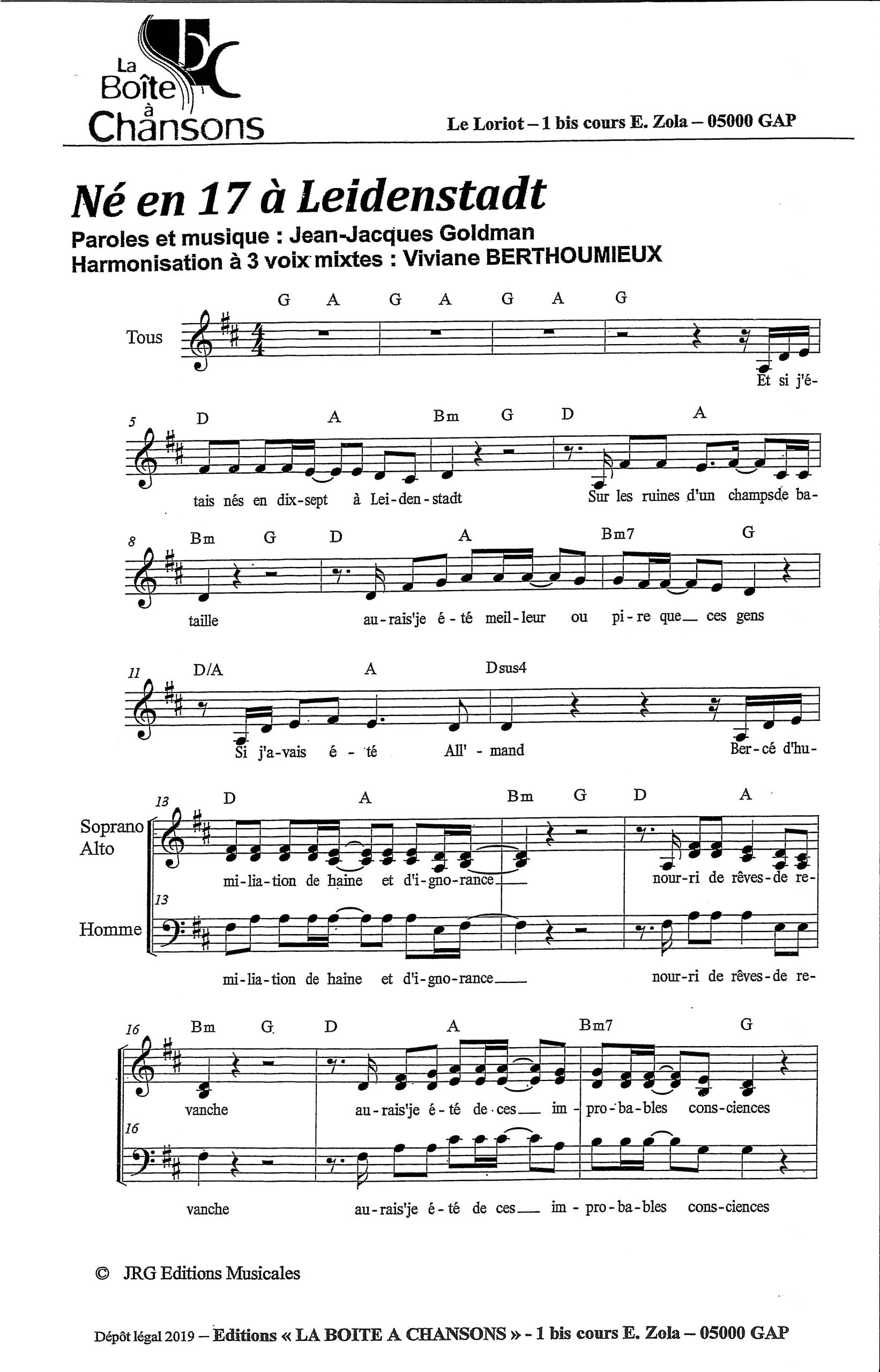 Paroles et musique : J.J Goldman Harmonisation : Viviane Berthoumieux