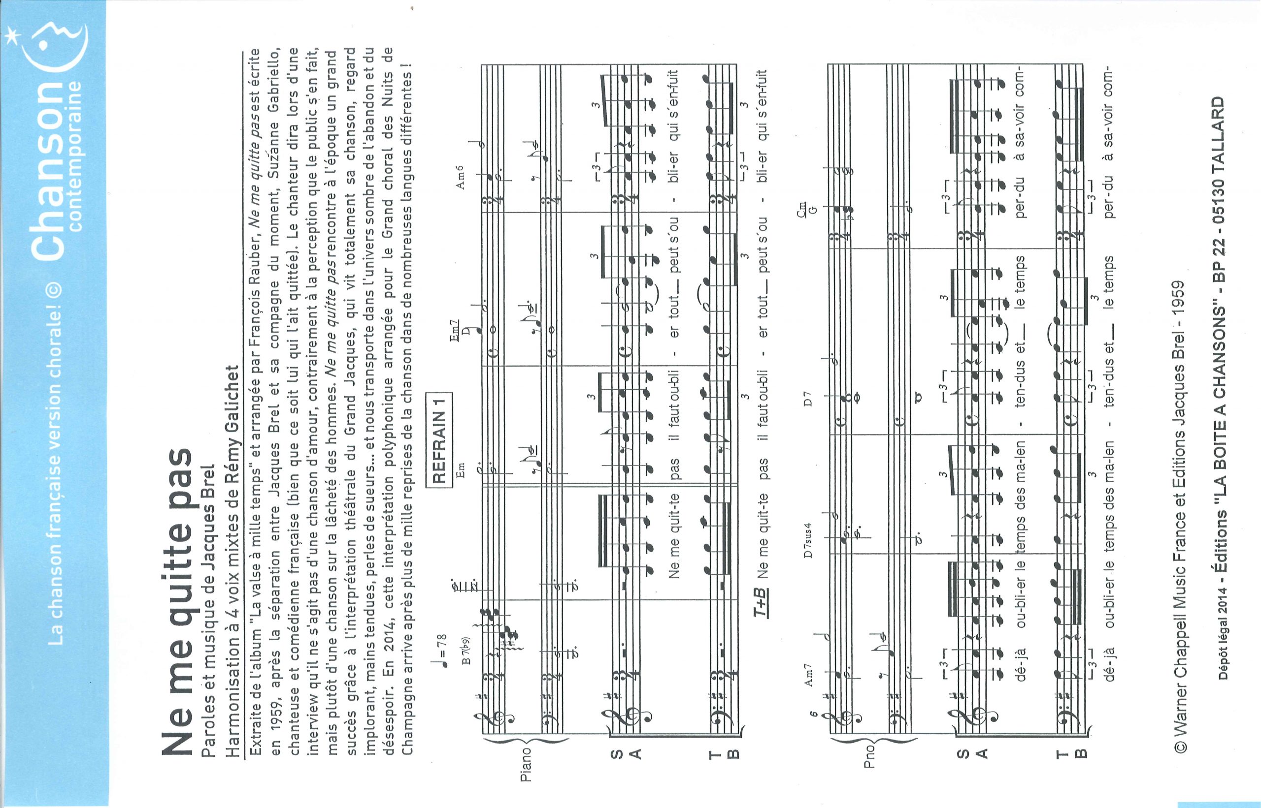 Paroles et musique de BREL Harmonisation :Rémy GALICHET