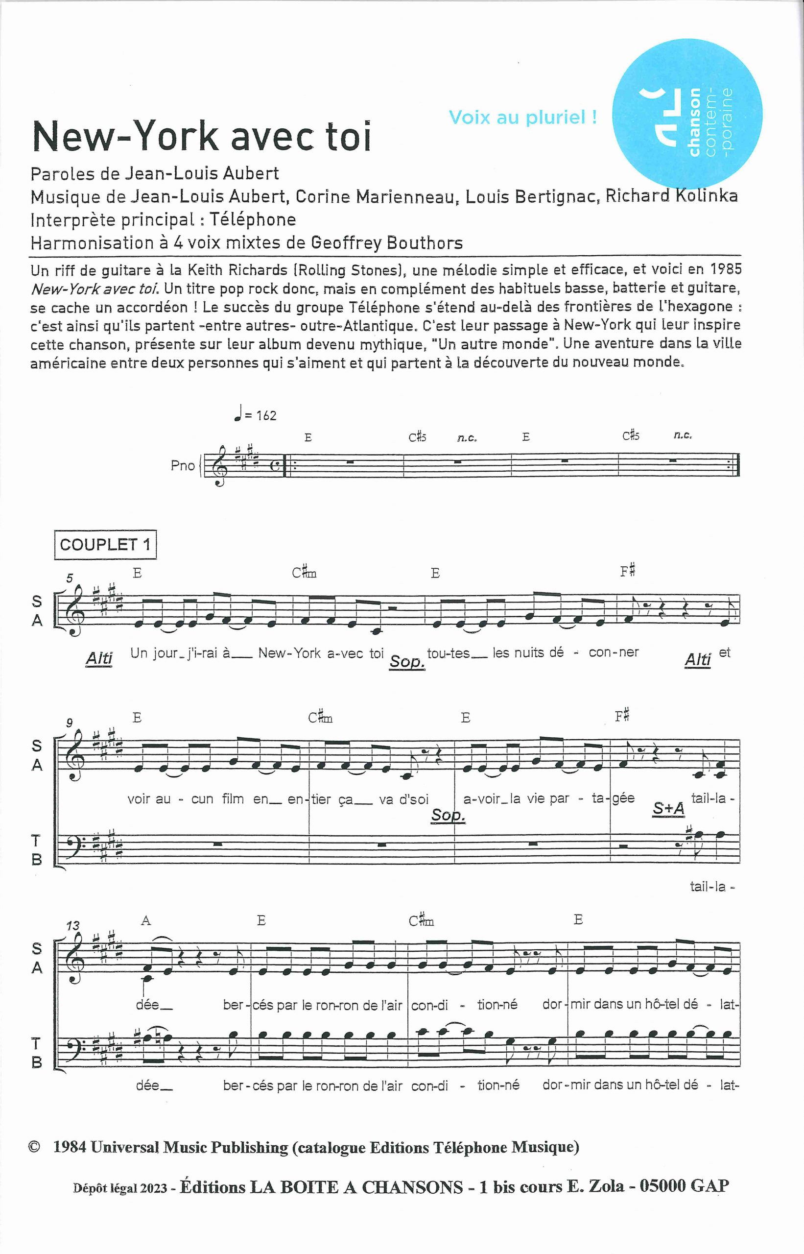 Paroles et musique : J.L.Aubert / C. Marienneau / L. Bertignac / R. Kolinka Harmonisation : Geoffrey Bouthors