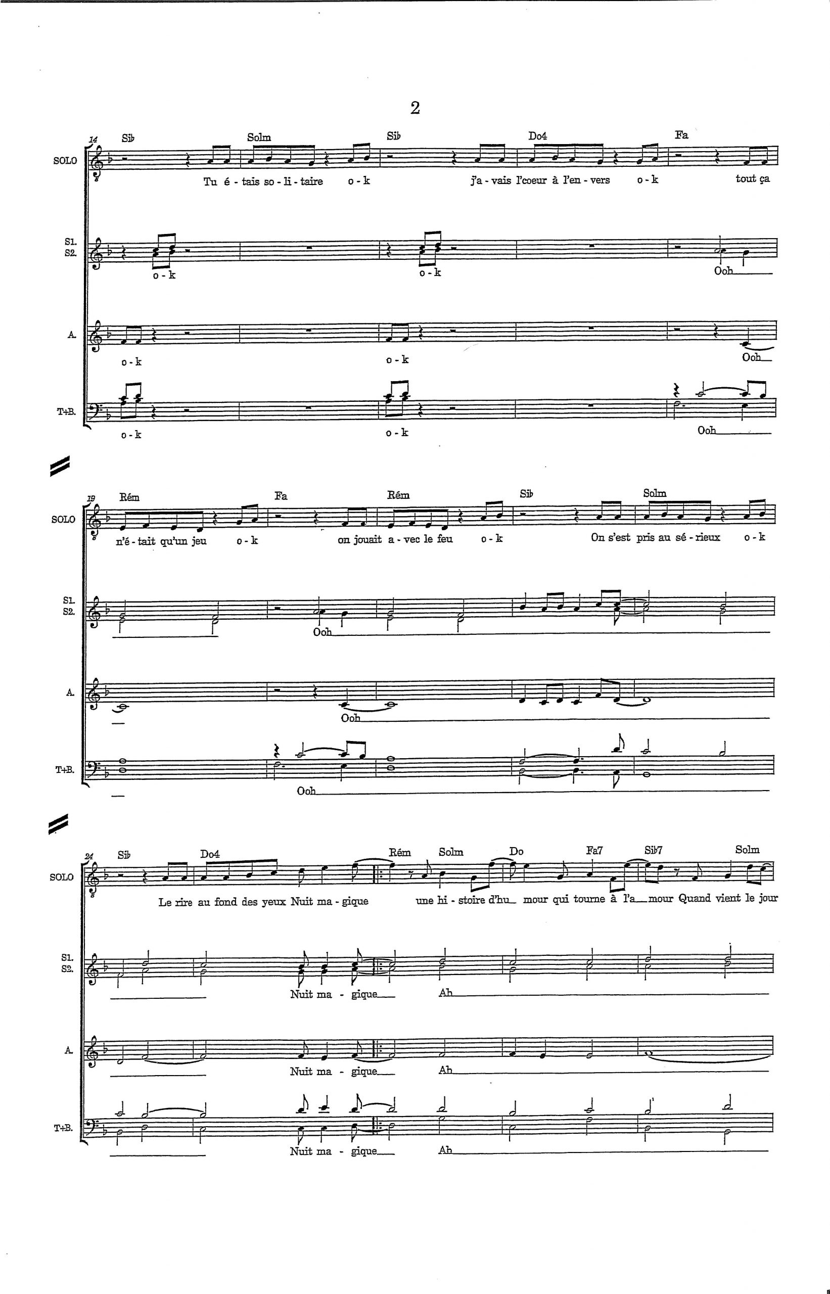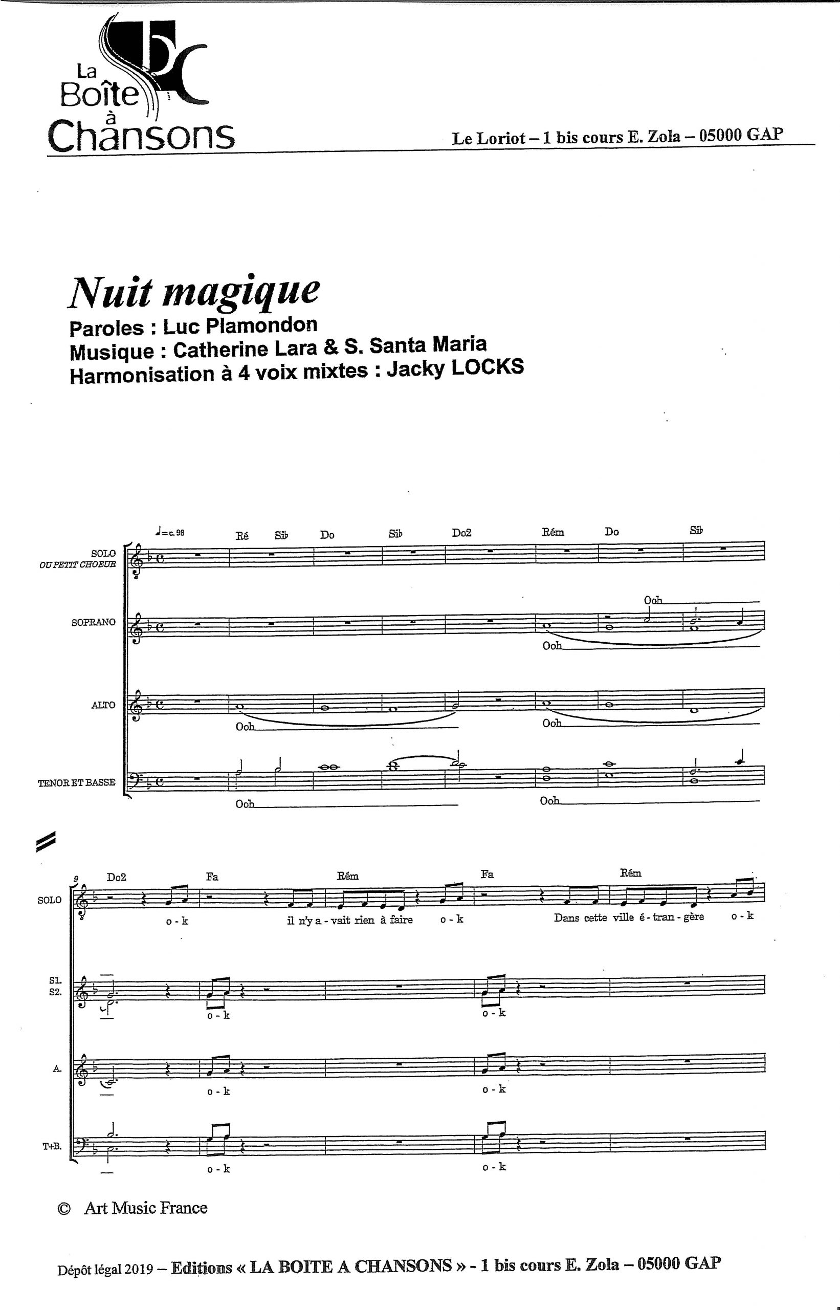 Paroles et musique : L. Plamondon / C. Lara / Santa Maria Harmonisation : Jacky Locks