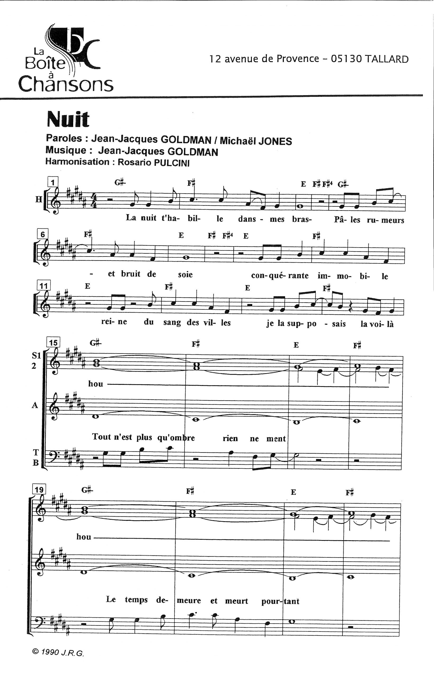 Paroles et musique de GOLDMAN Harmonisation :Rosario PULCINI