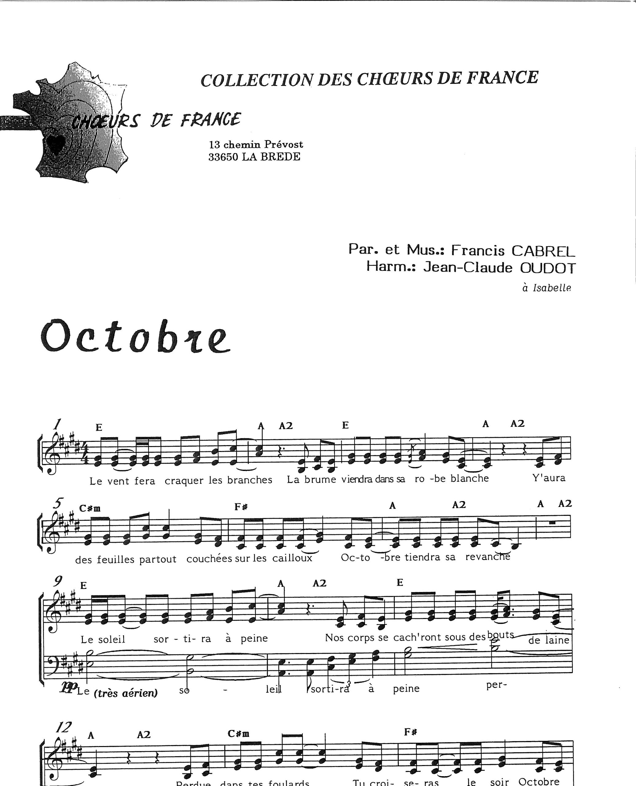 Paroles et musique : F. Cabrel Harmonisation : Jean Claude OUDOT