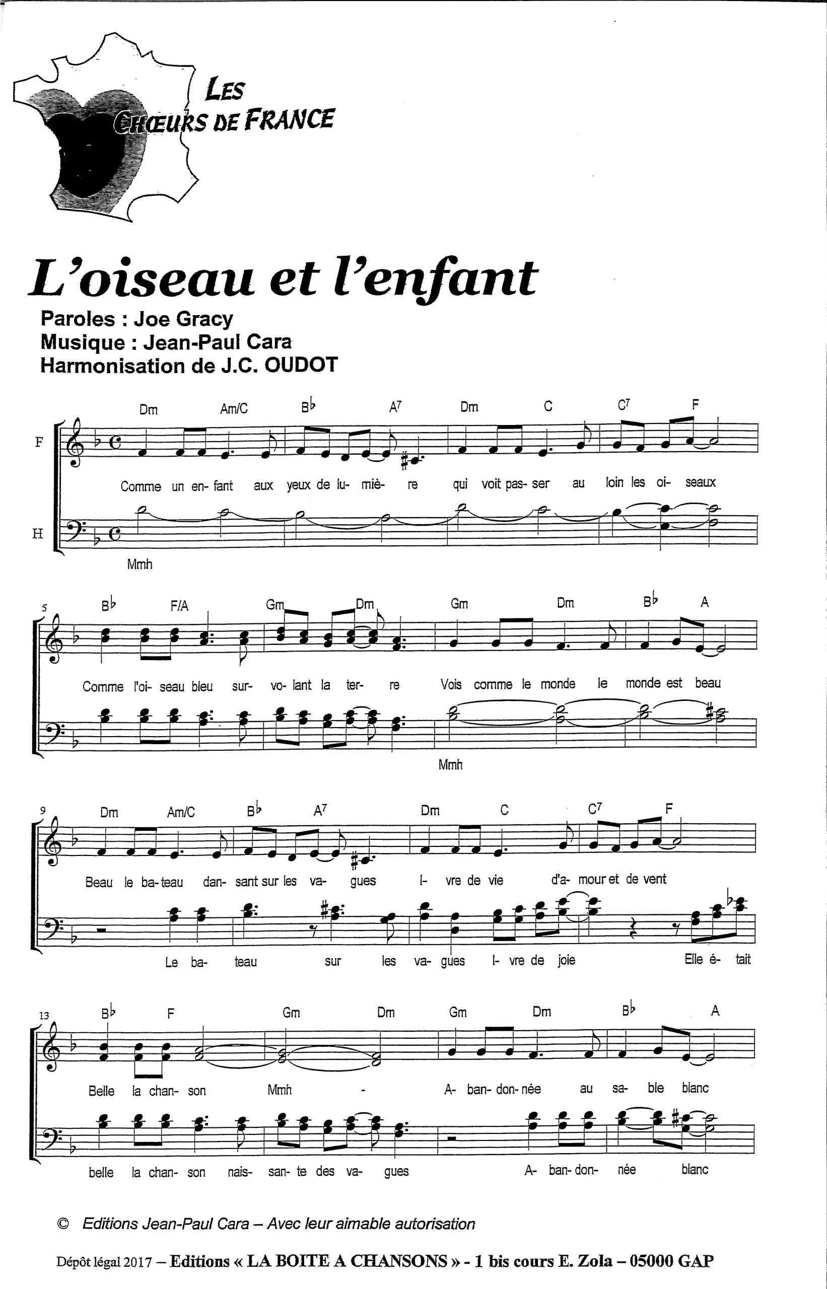 Paroles et musique : J. Gracy / J.P. Cara Harmonisation : Jean Claude Oudot