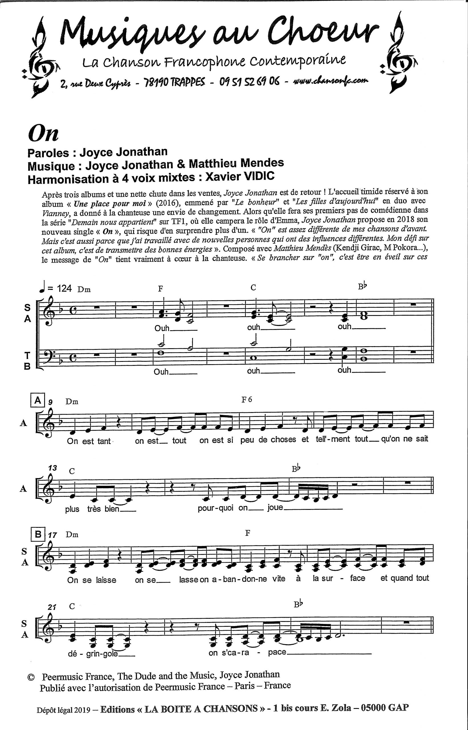 Paroles et musique : J. Jonathan et M. Mendes Harmonisation : Xavier Vidic