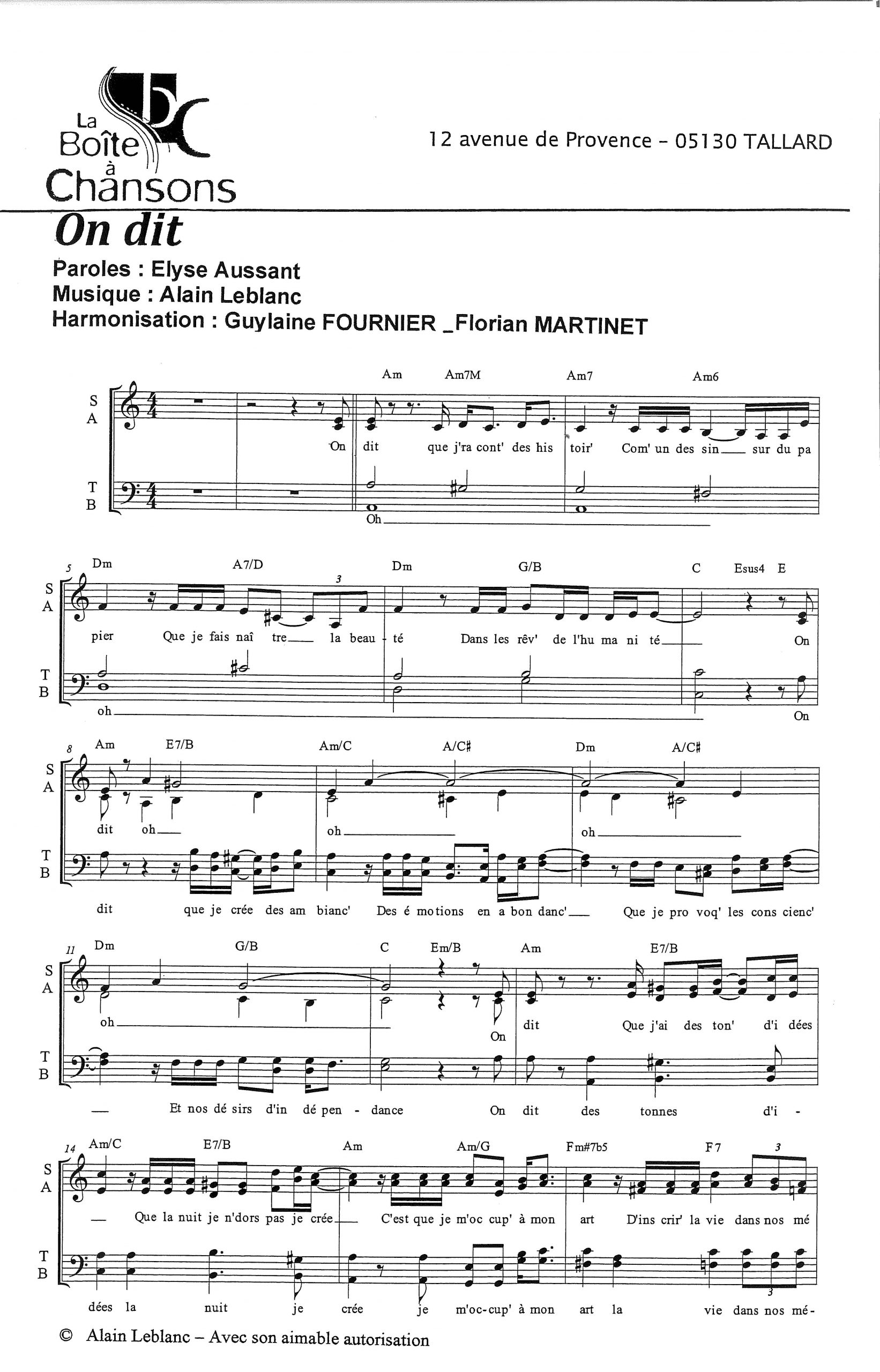 Paroles et musique de AUSSANT / LEBLANC Harmonisation : Guylaine FOURNIER