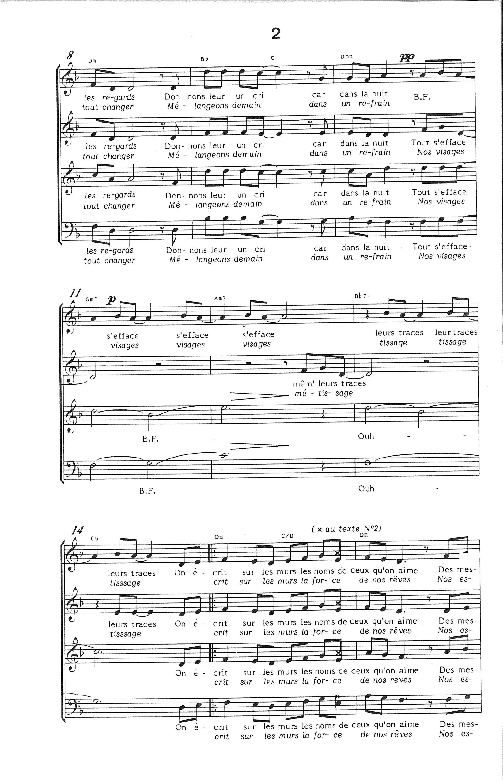 Paroles et musique de MOREAU/MUSUMARRA Harmonisation : Jean Claude OUDOT