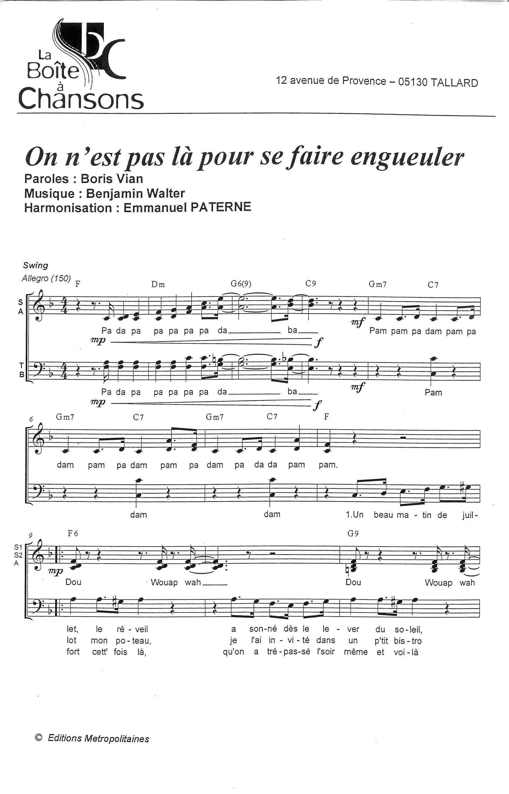 Paroles : Boris Vian / Musique : Benjamin Walter Harmonisation : Emmanuel PATERNE