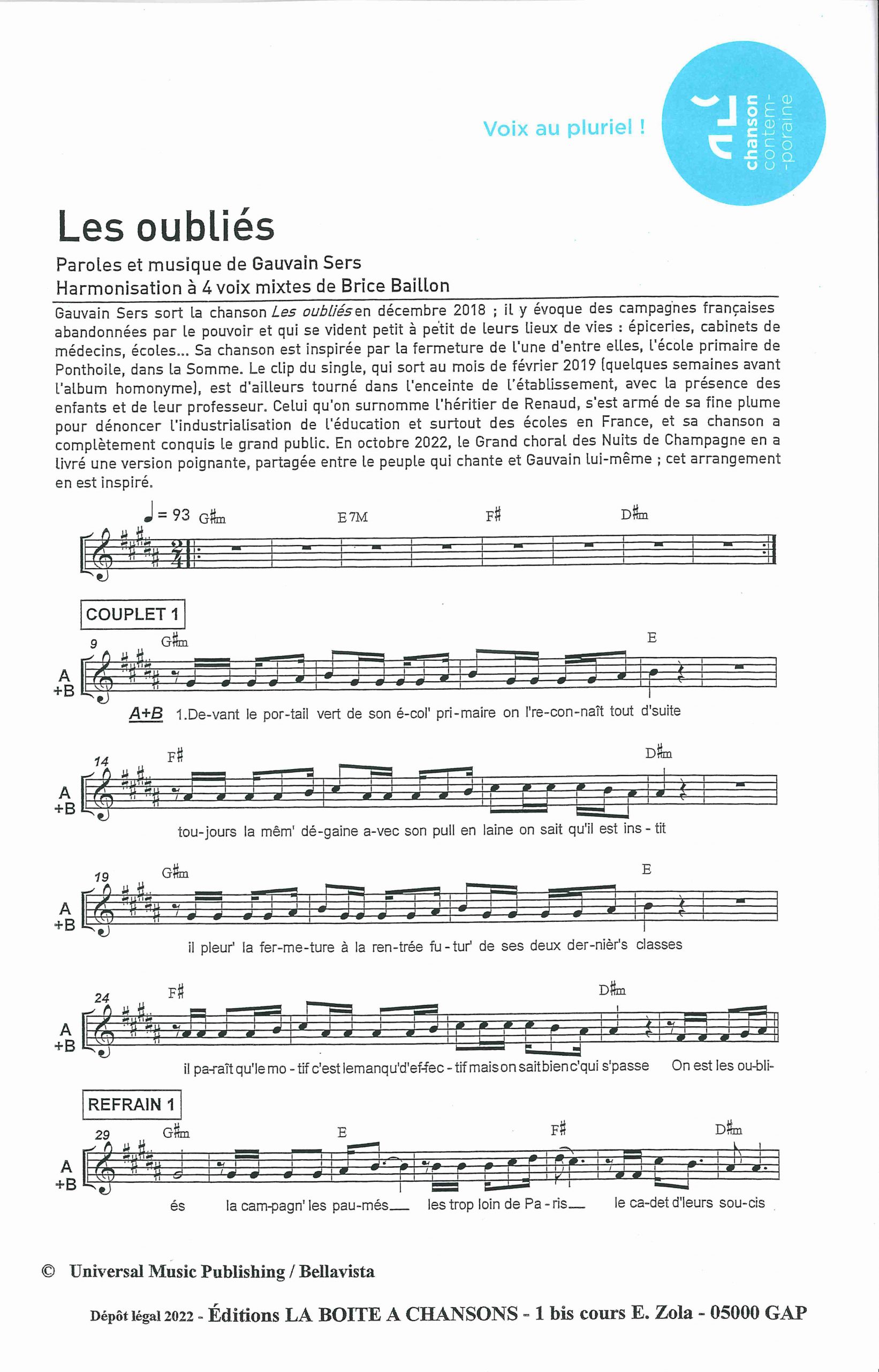 Paroles et musique : G. Sers Harmonisation : Brice Baillon