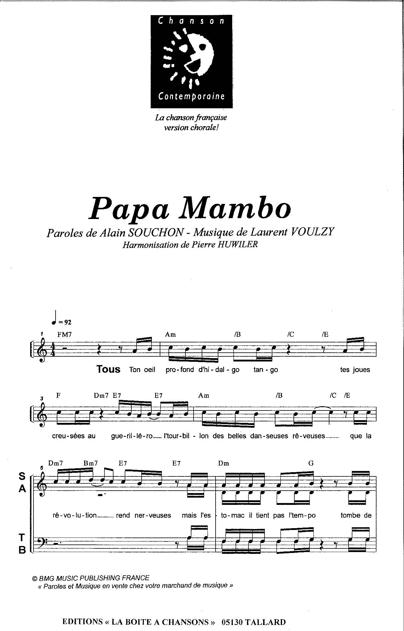 Paroles et musique de SOUCHON/VOULZY Harmonisation : Pierre HUWILER