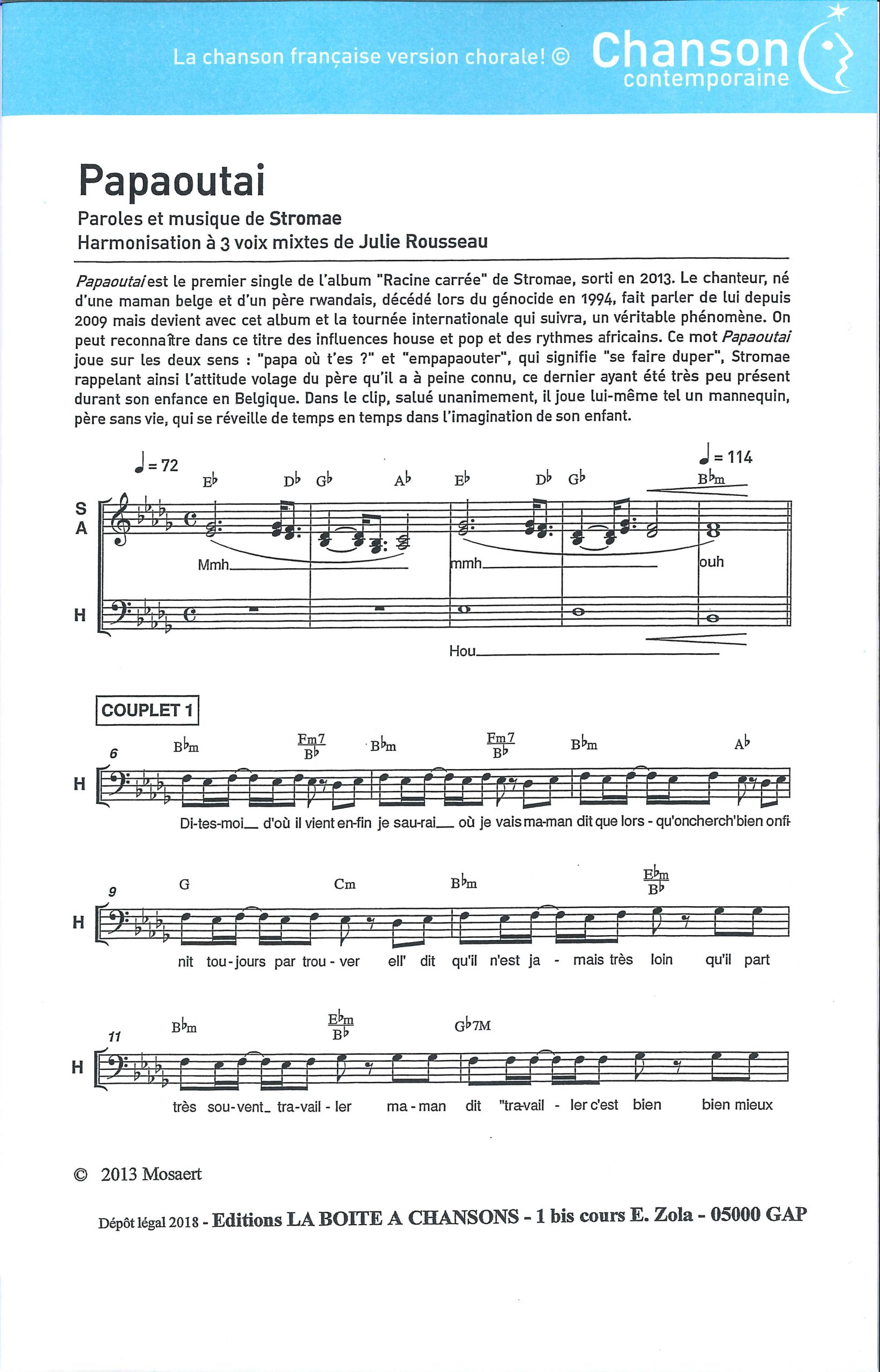 Paroles et musique : Stromae Harmonisation : Julie Rousseau