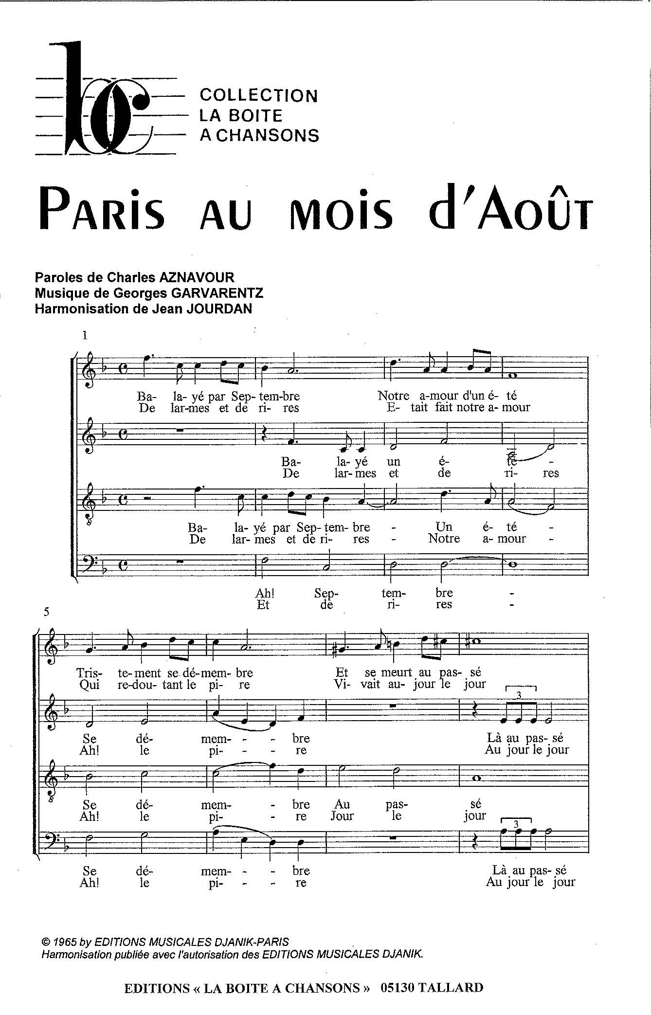 Paroles et musique de AZNAVOUR/GAVARENTZ Harmonisation : Jean JOURDAN