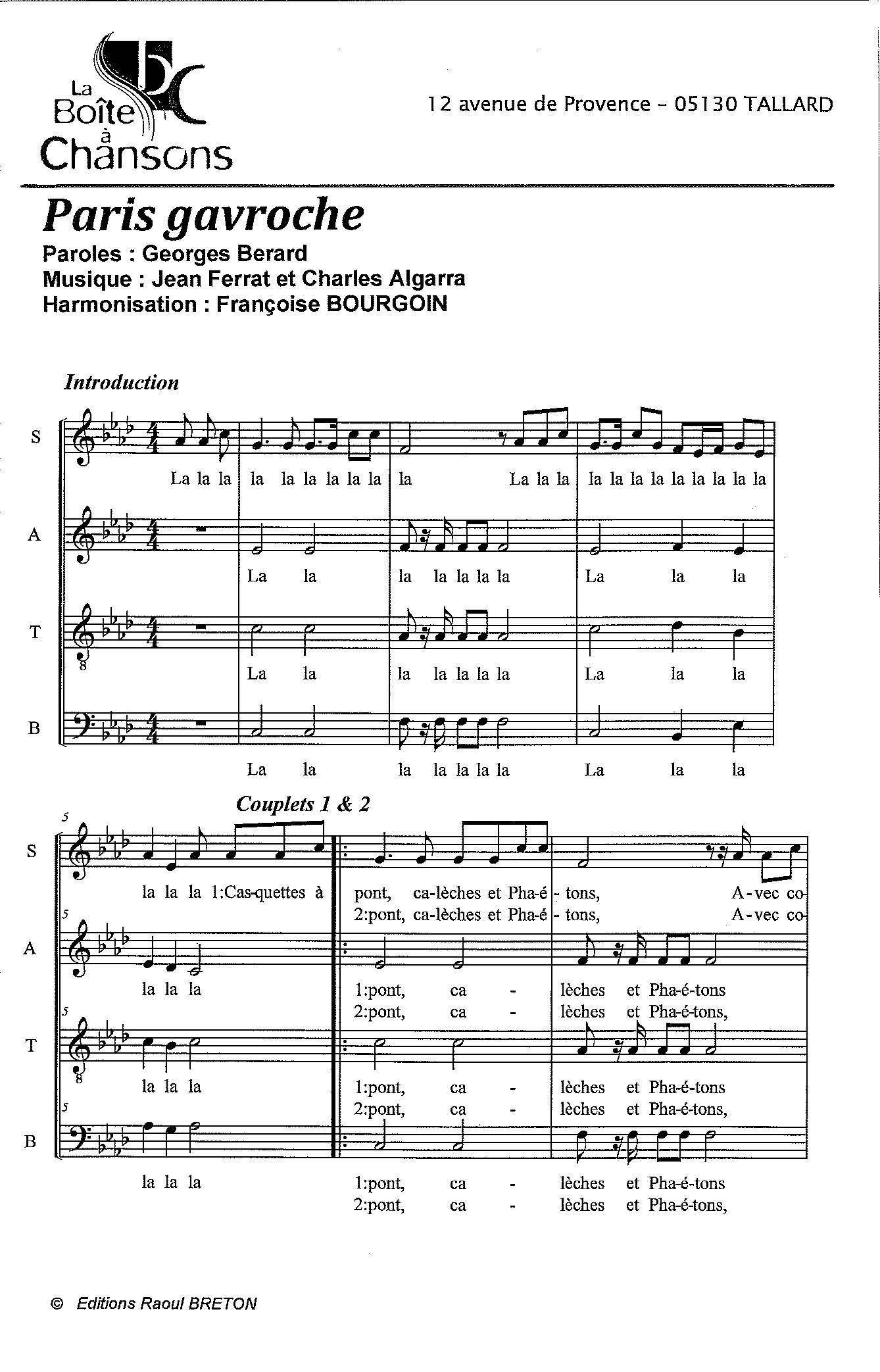 Paroles et musique de FERRAT Harmonisation : BOURGOIN