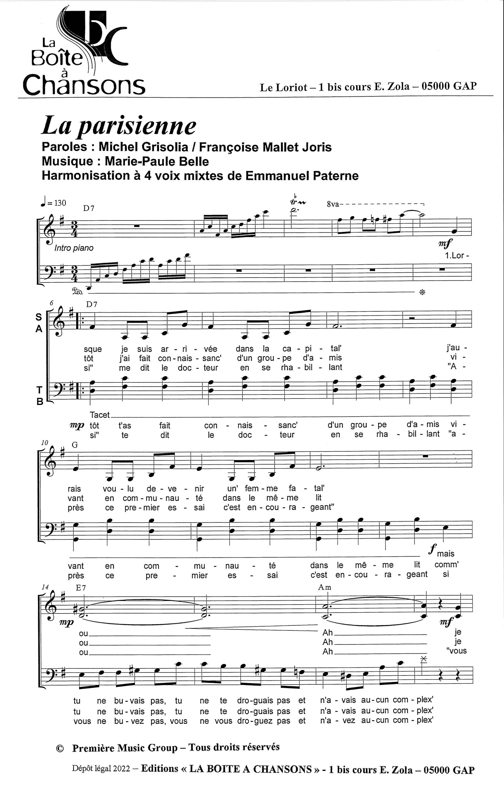 Paroles et musique : M. Grisolia / F. Mallet Joris / M.P Belle Harmonisation : Emmanuel Paterne