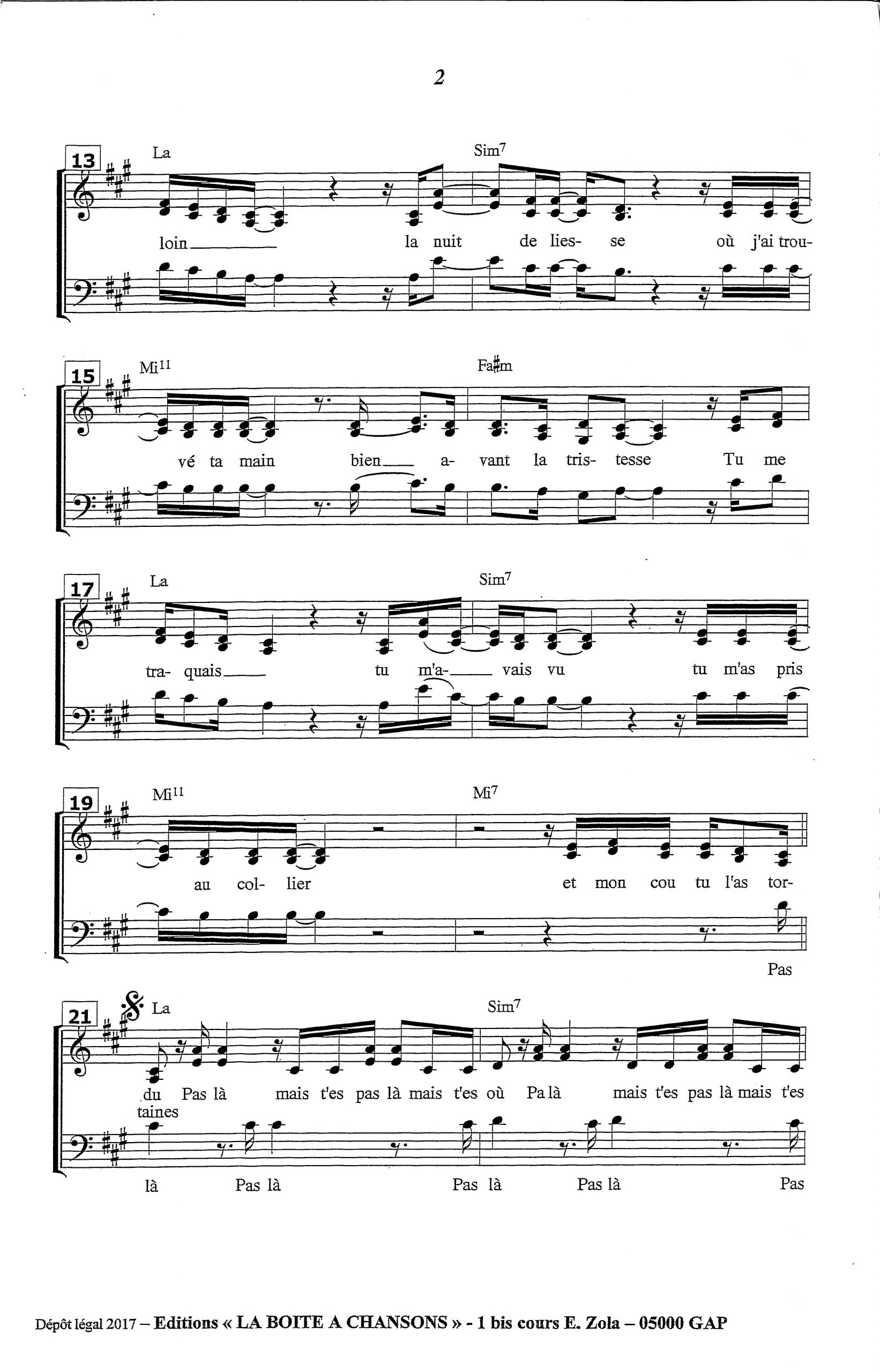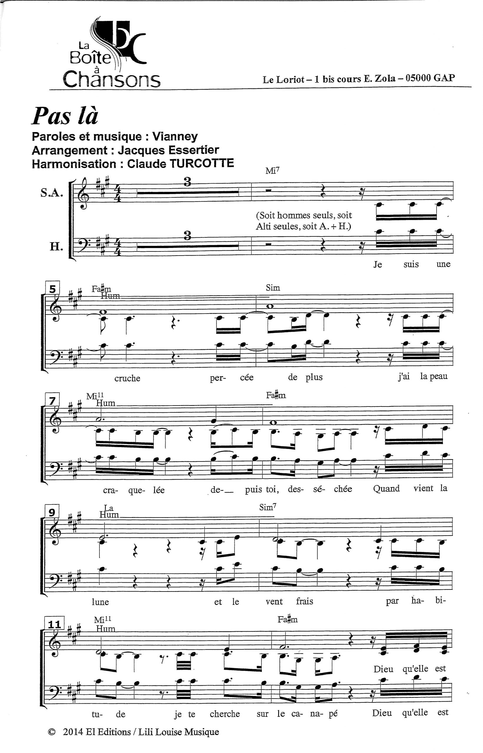 Paroles et musique : Vianney / J. Essertier Harmonisation : Claude Turcotte