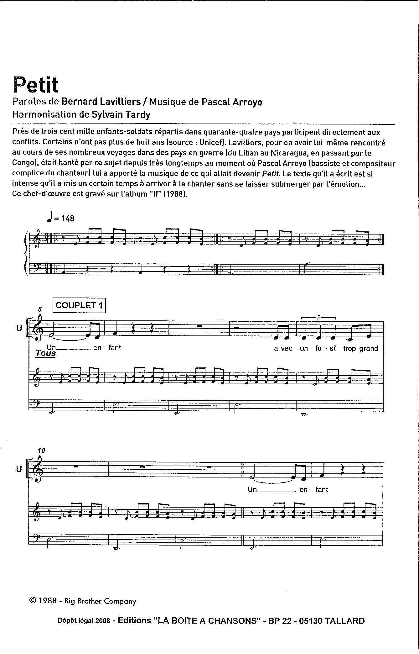 Paroles et musique de LAVILLIERS/ARROYO Harmonisation : Sylvain TARDY