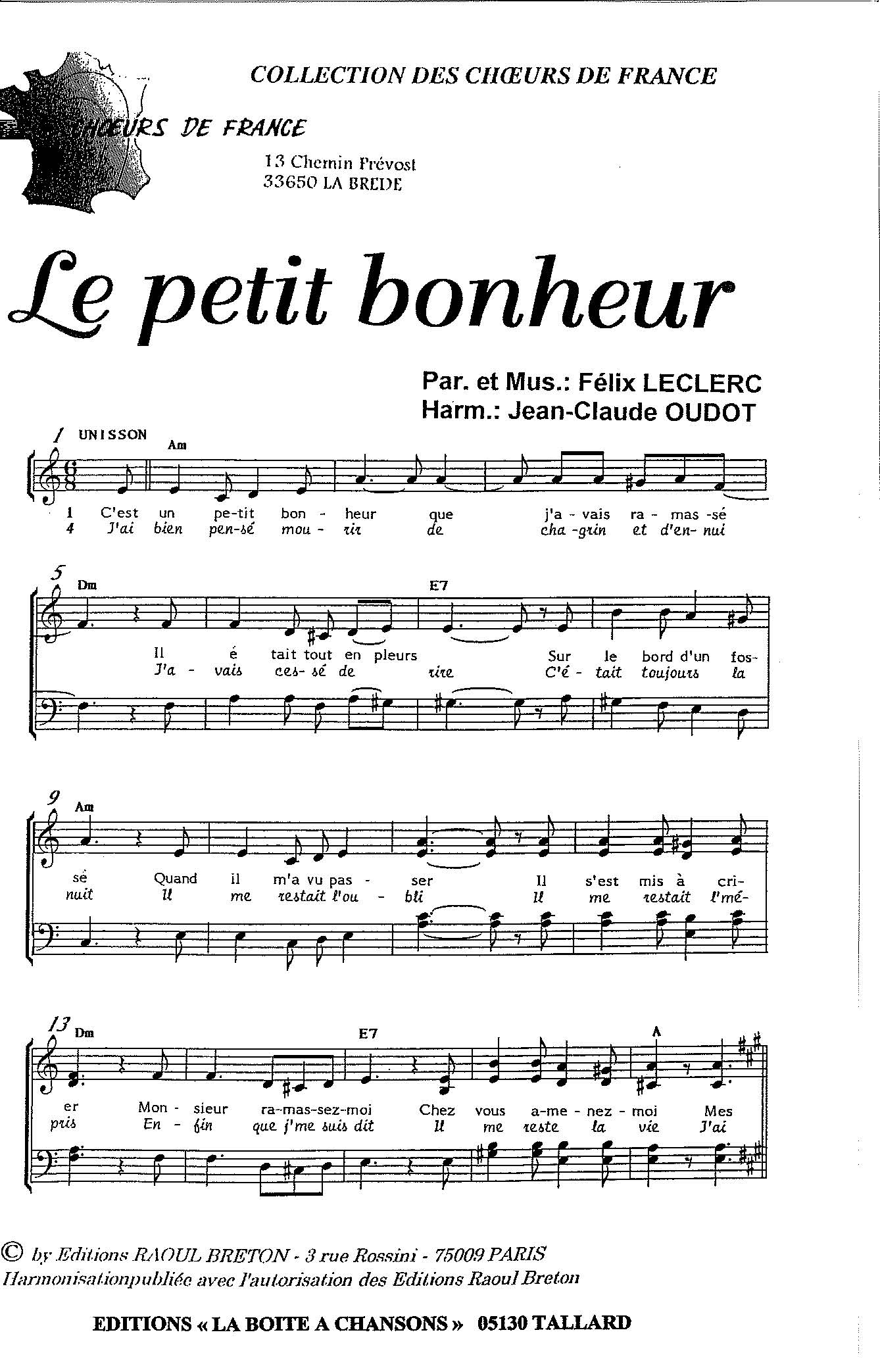 Paroles et musique de LECLERC Harmonisation : Jean Claude OUDOT