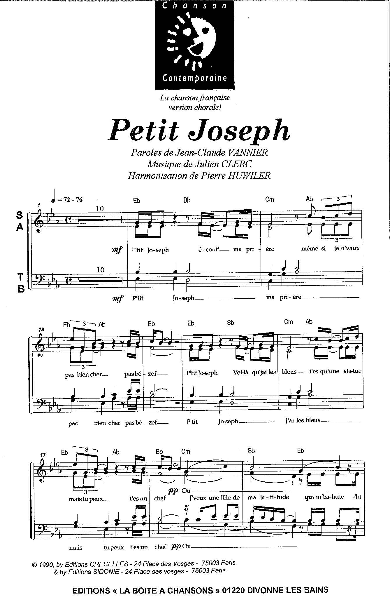 Paroles et musique de RODA-GIL/CLERC Harmonisation : Pierre HUWILER