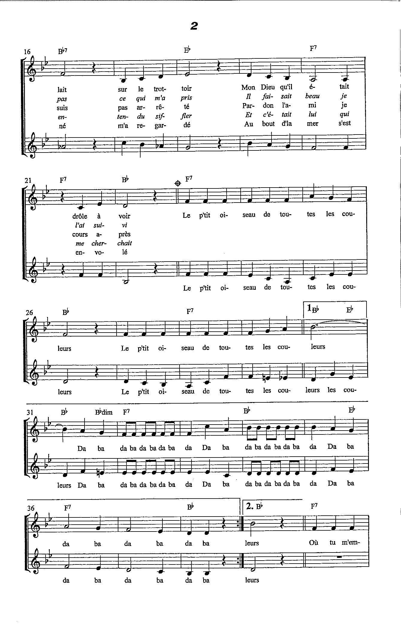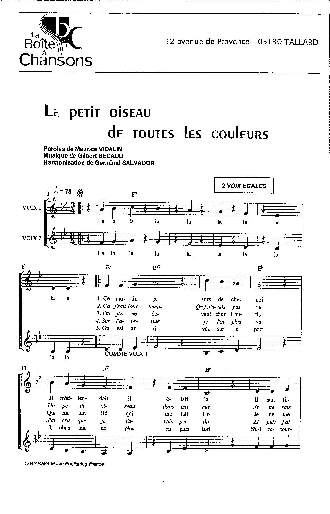 Paroles et musique de VIDALIN/BECAUD Harmonisation : Germinal SALVADOR