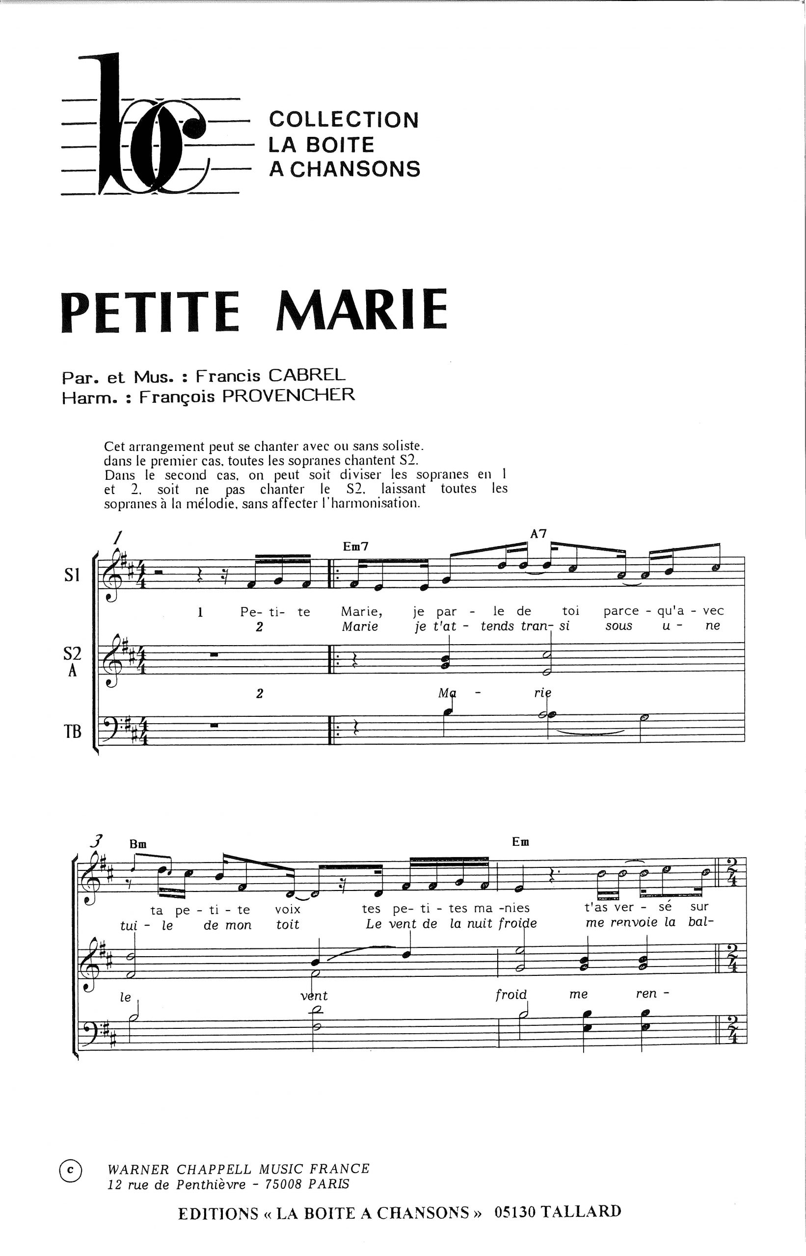 Paroles et musique de CABREL Harmonisation : Francois PROVENCHER