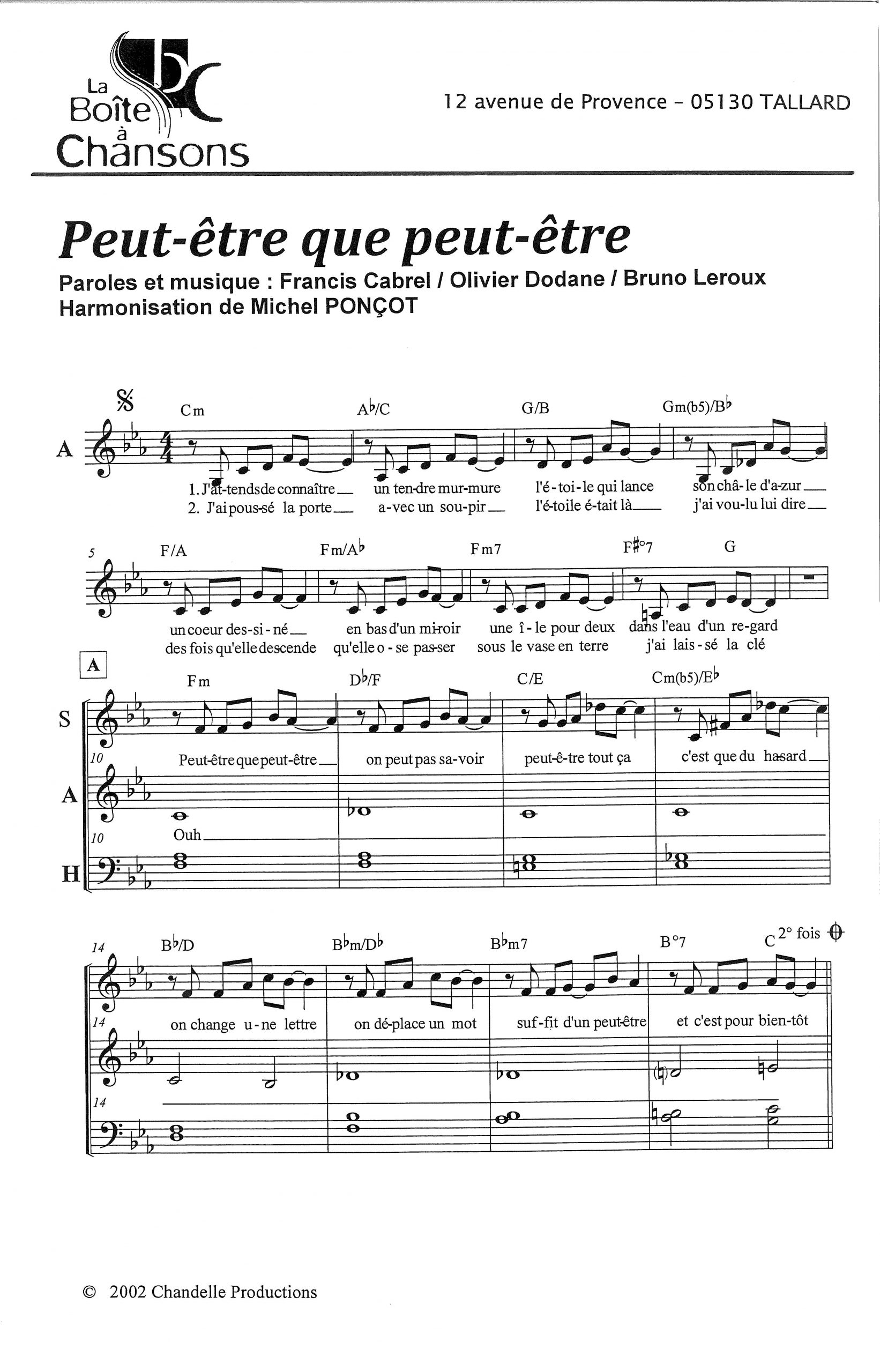Paroles et musique de CABREL Harmonisation : Michel PONCOT
