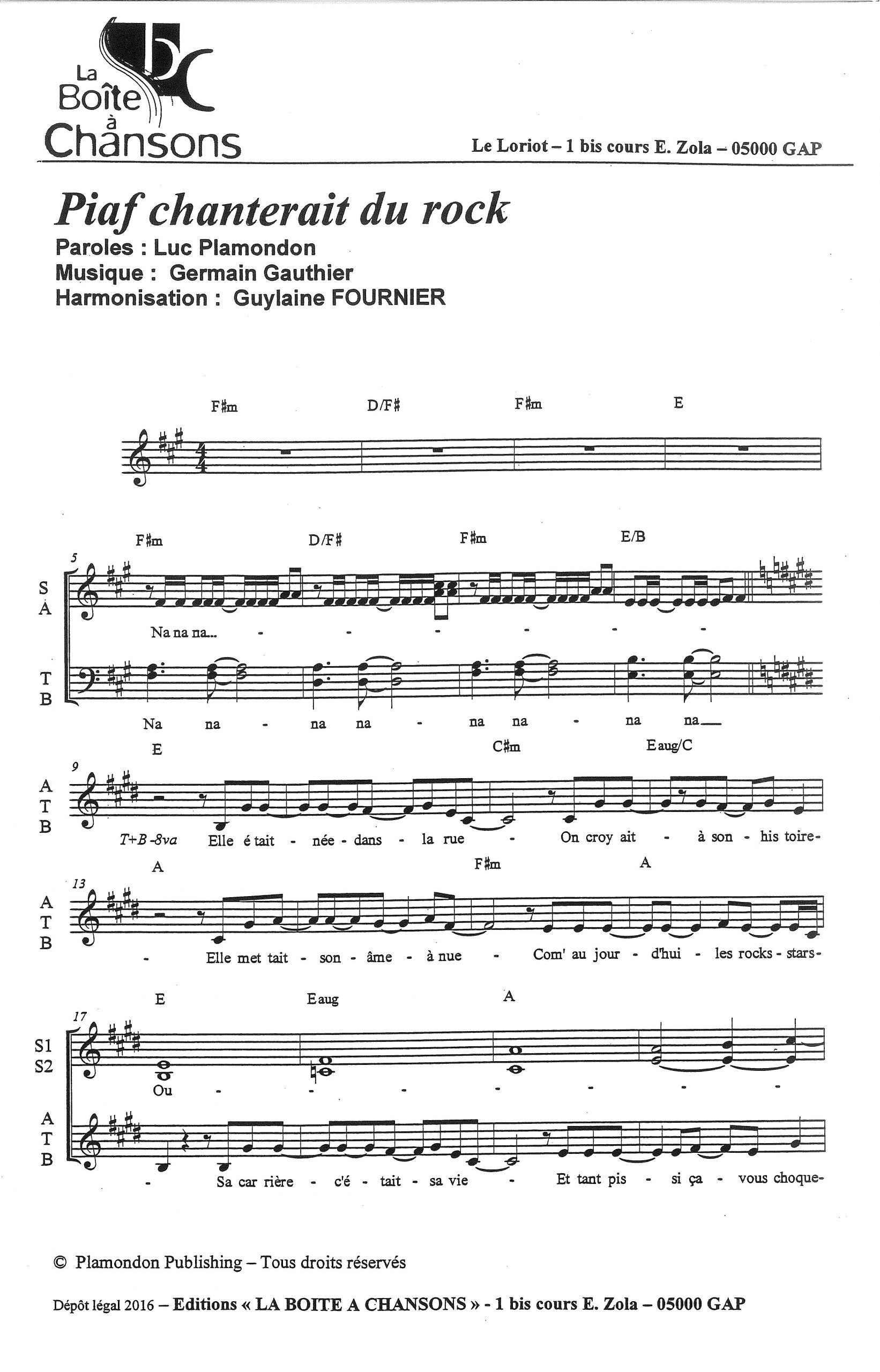 Paroles et musique : L. Plamondon / G. Gauthier Harmonisation : Guylaine FOURNIER