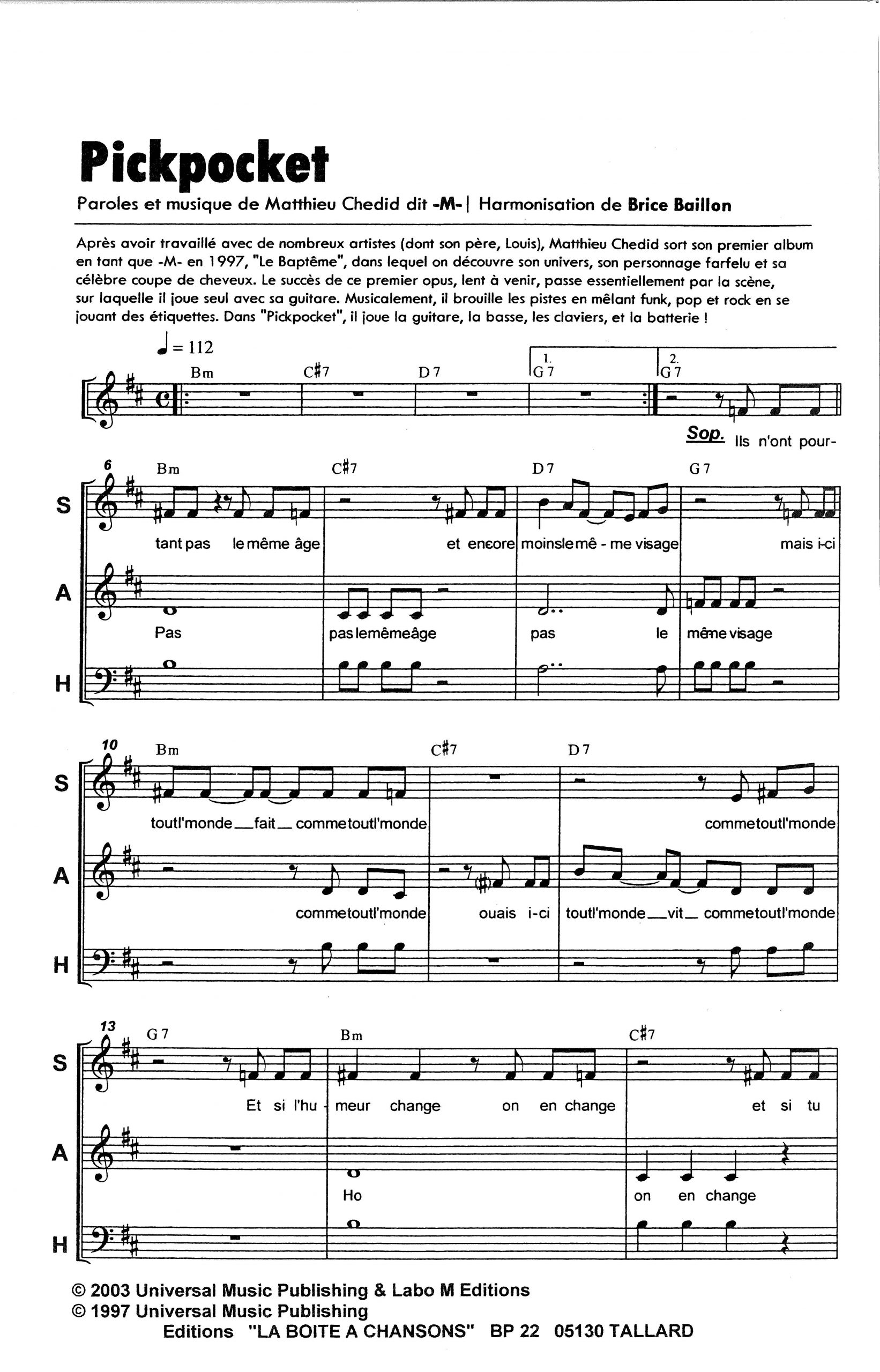 Paroles et musique de M Harmonisation : Brice BAILLON