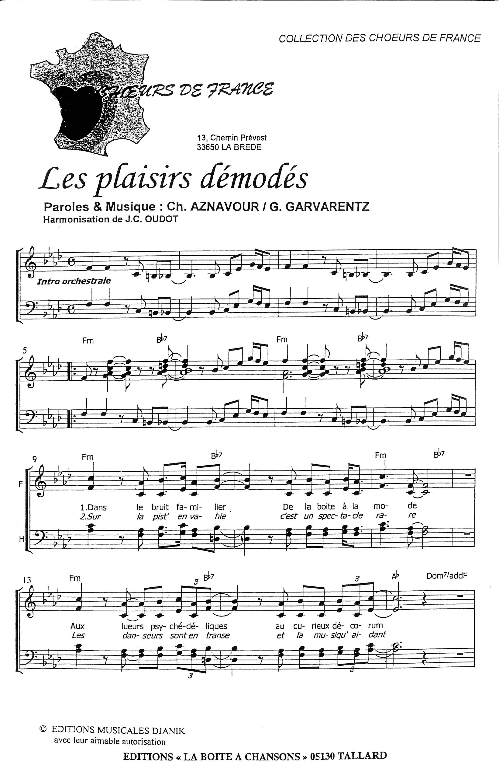 Paroles et musique de AZNAVOUR/GARVARENTZ Harmonisation : Jean Claude OUDOT