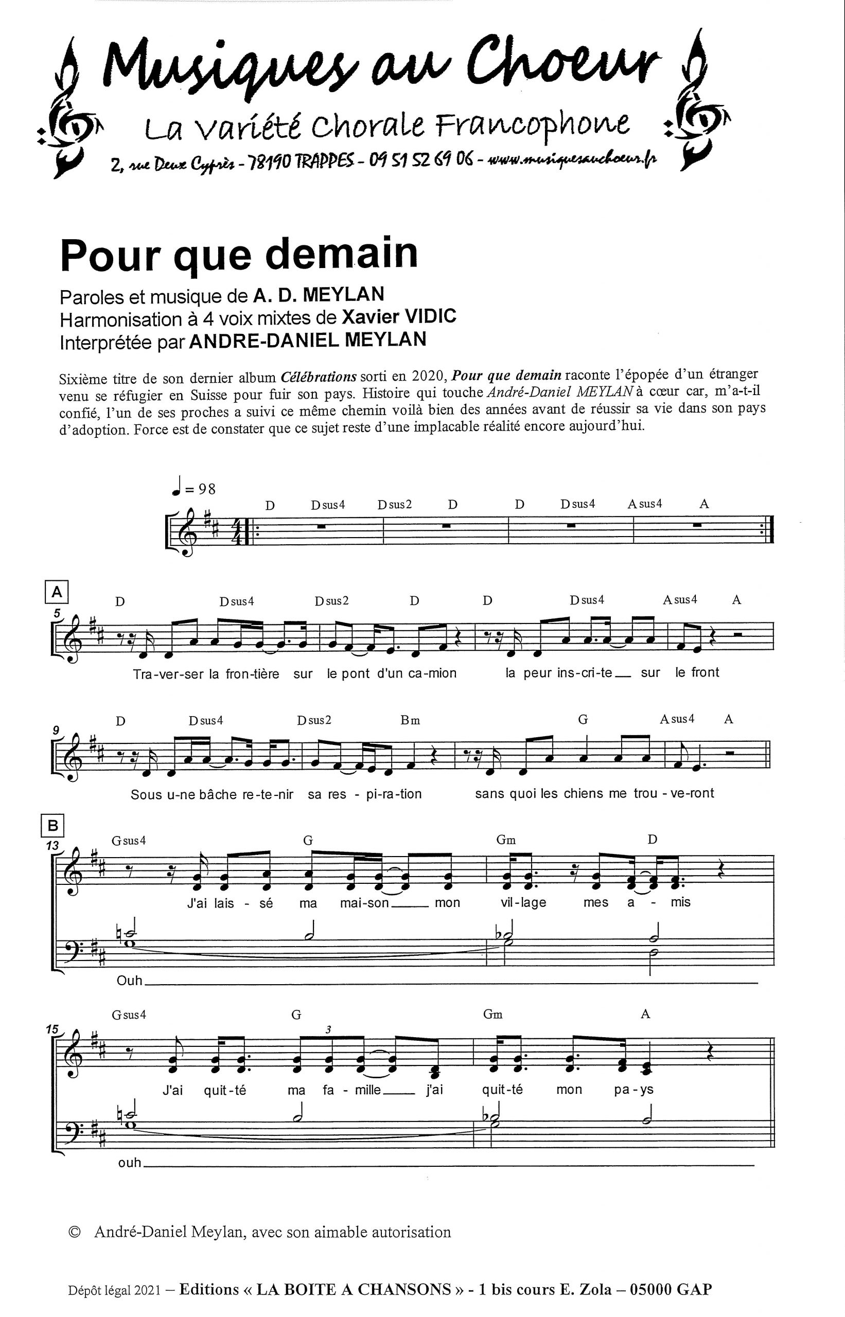 Paroles et musique : A.D. Meylan Harmonisation. Xavier Vidic
