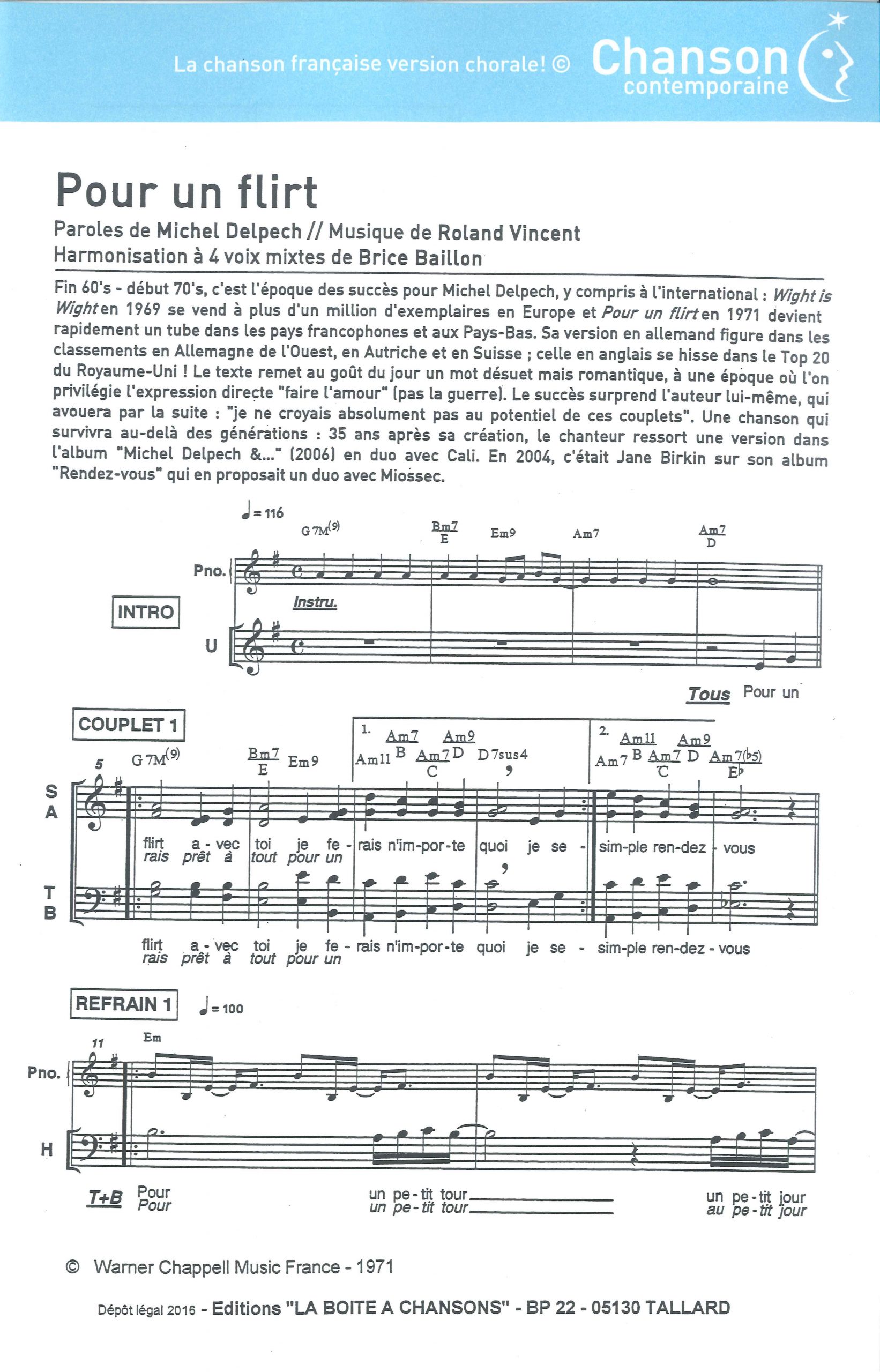 Paroles et musique : M. Delpech / R. Vincent Harmonisation : Brice BAILLON