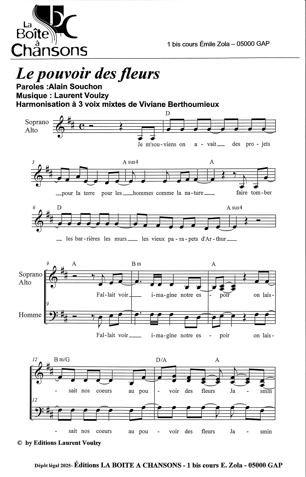 Harmonisation à  3 voix mixtes de Viviane Berthoumieux