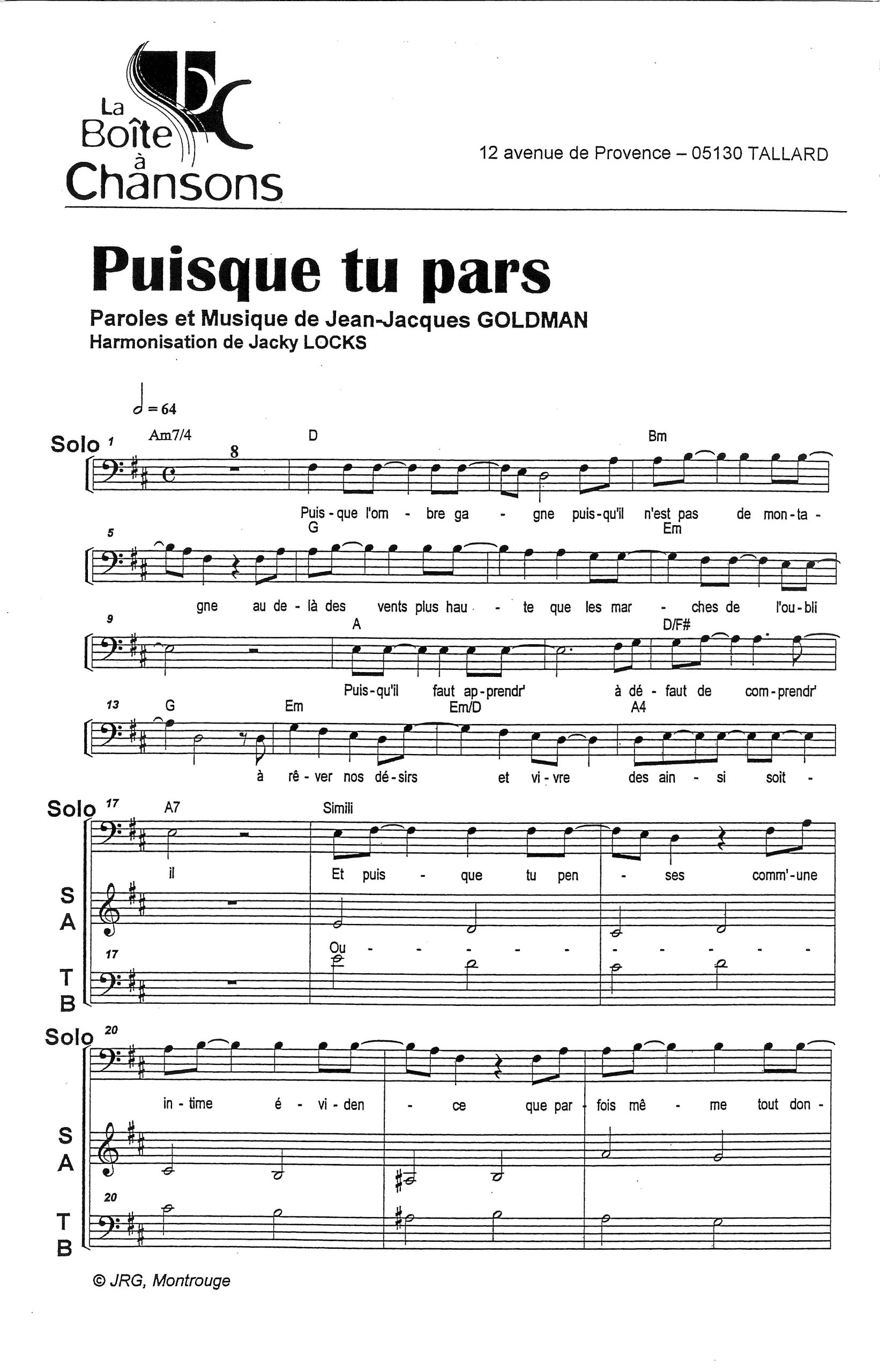 Paroles et musique de GOLDMAN Harmonisation : Jacky LOCKS