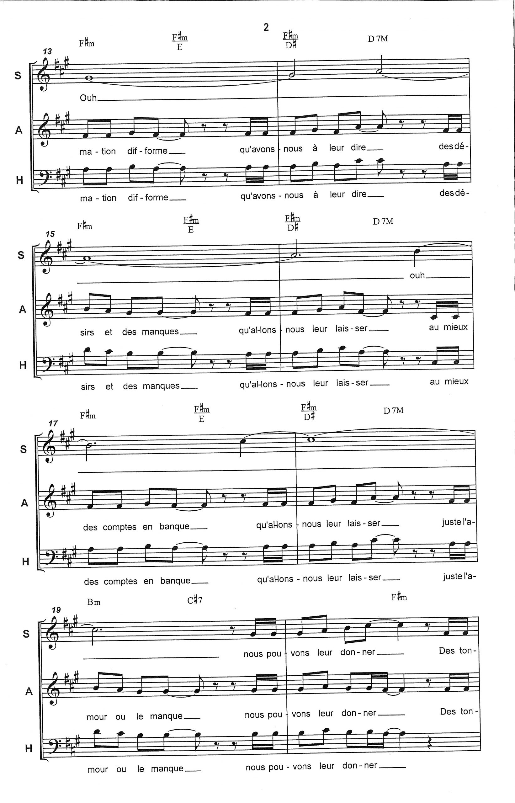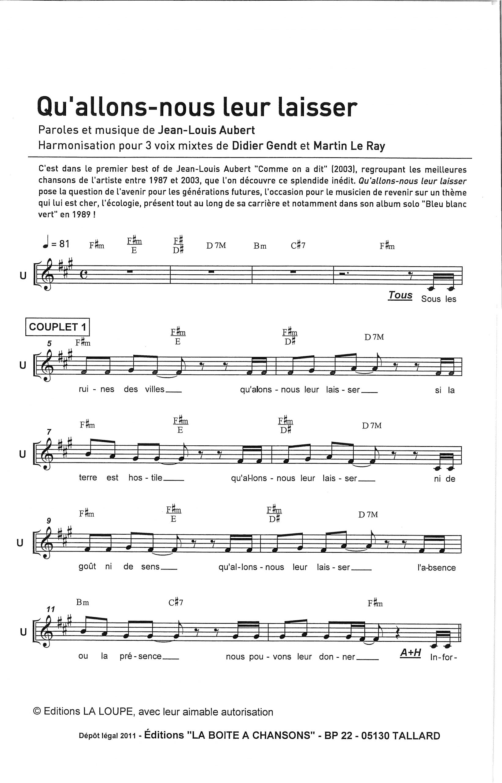 Paroles et musique de AUBERT Harmonisation : Didier GENDT/Martin LE RAY