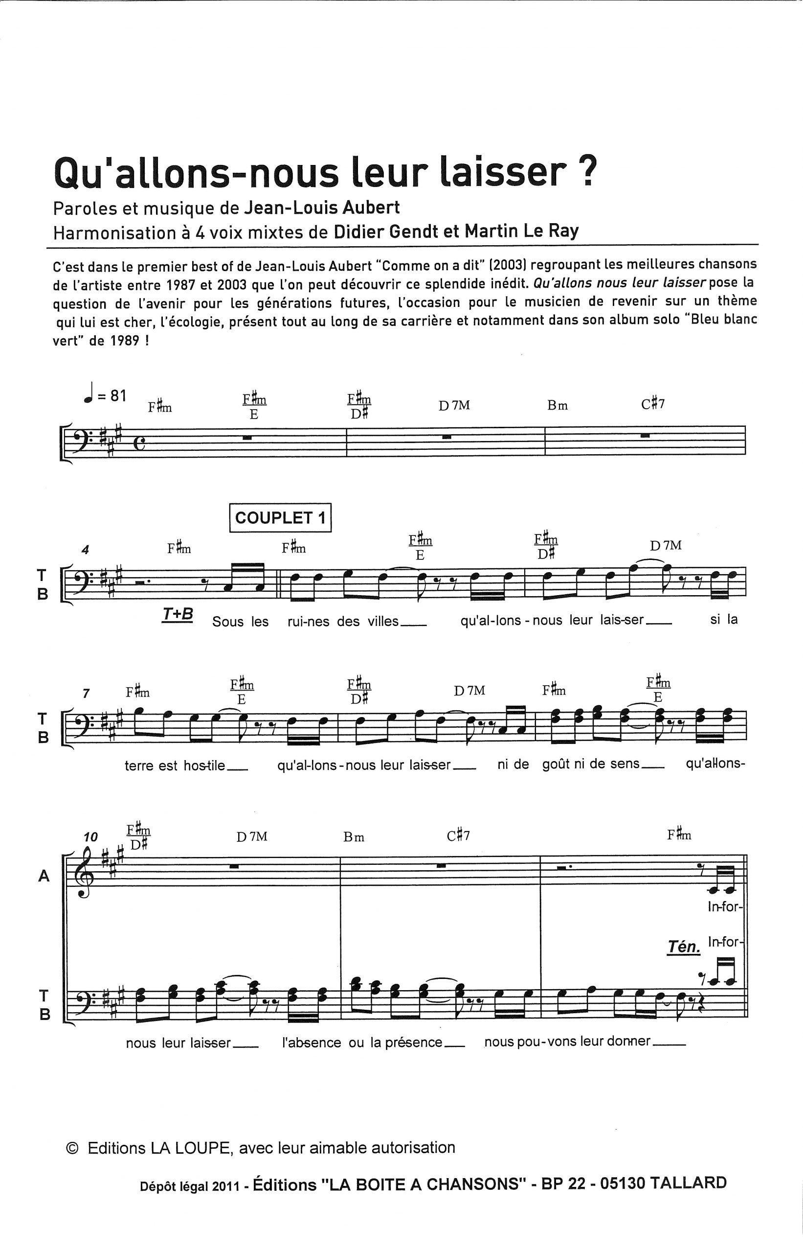 Paroles et musique de AUBERT Harmonisation : Didier GENDT
