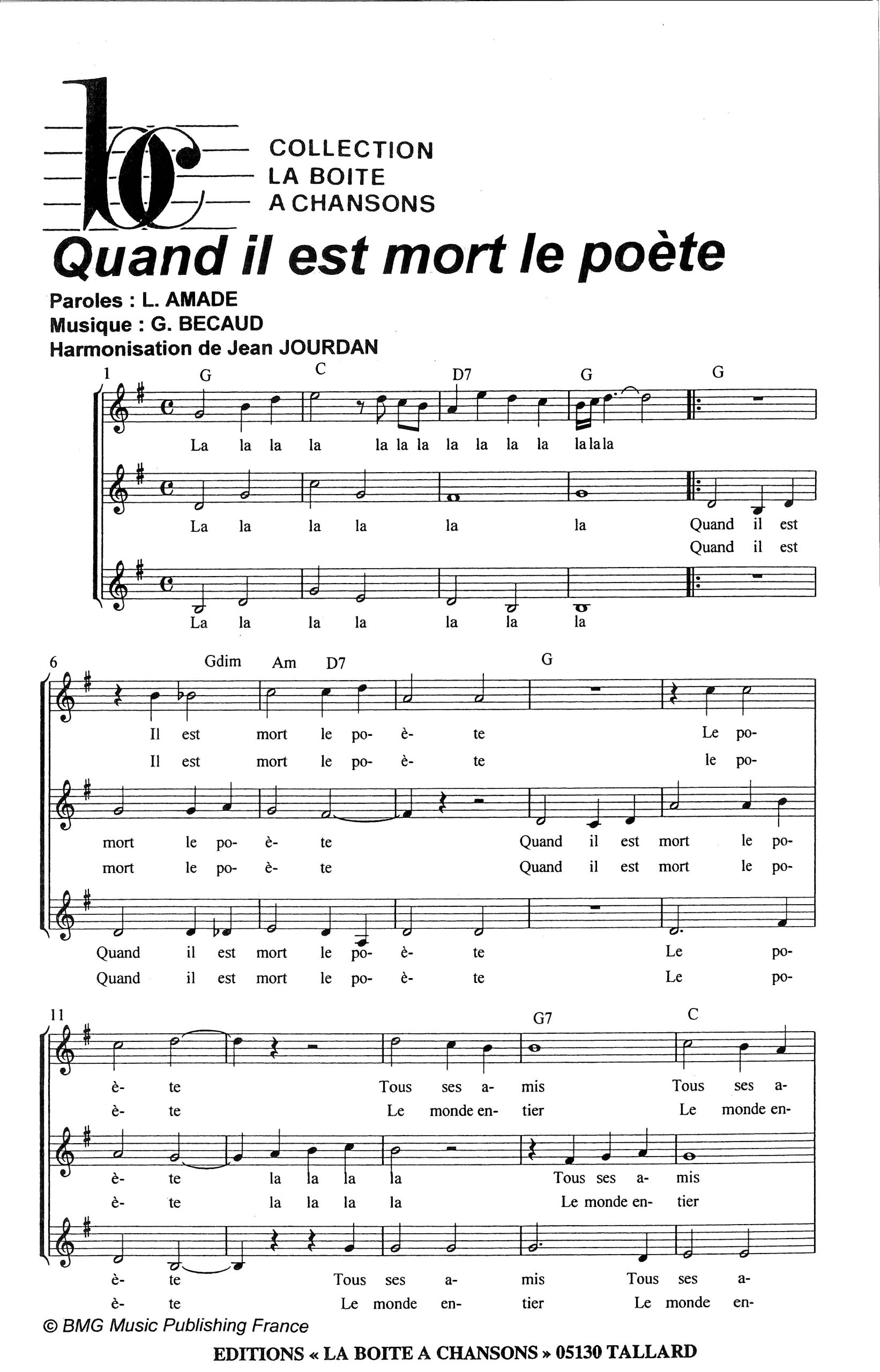 Paroles et musique de AMADE/BECAUD Harmonisation : Jean JOURDAN
