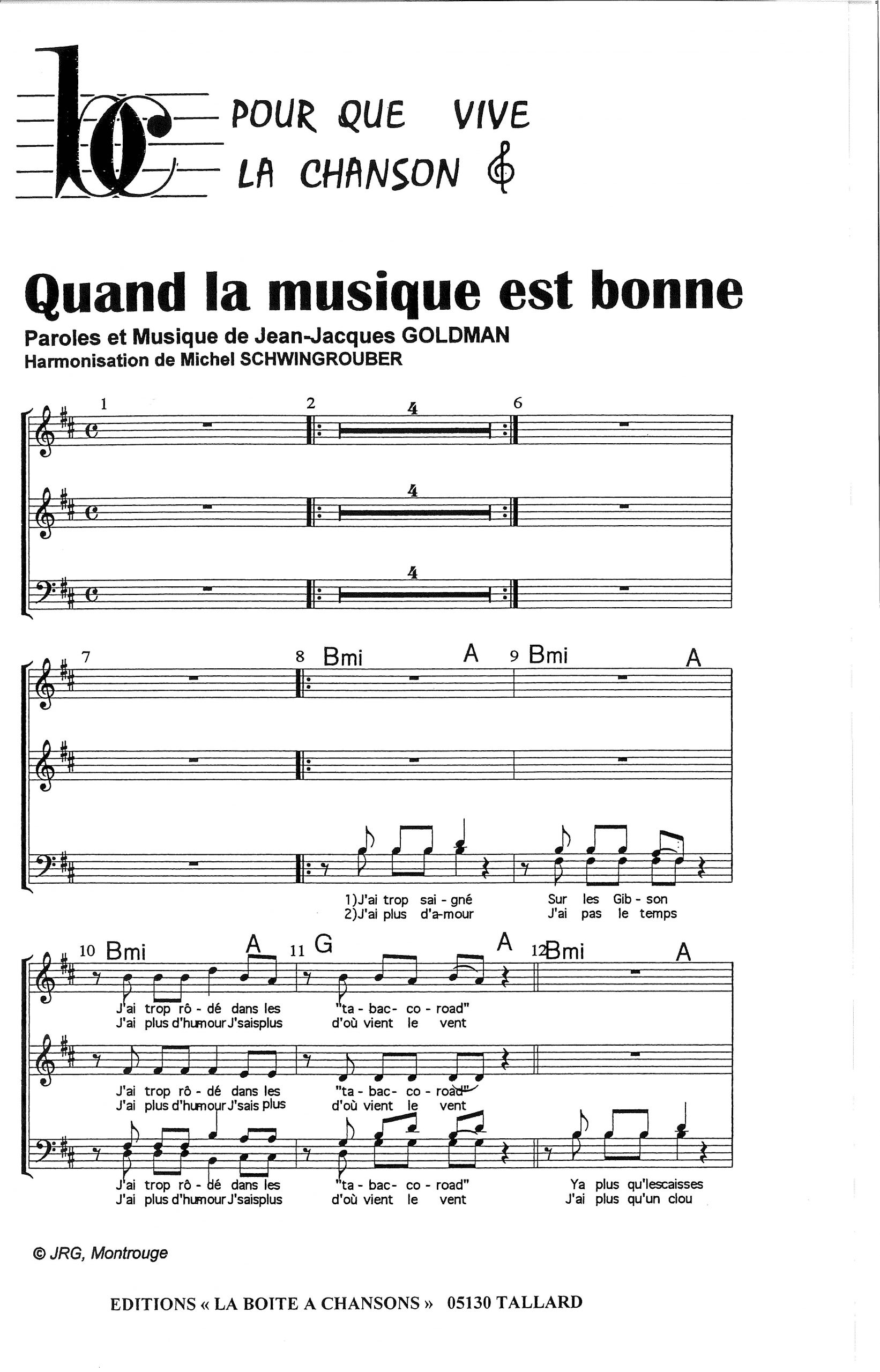 Paroles et musique de GOLDMAN Harmonisation : Michel SCHWINGROUBER